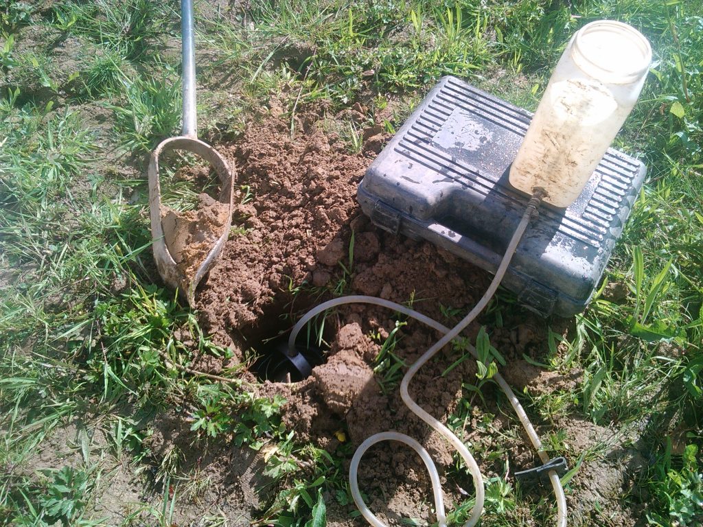 Un test de perméabilité est effectué à l'aide d'un infiltromètre à niveau constant. Le coefficient de perméabilité K mesuré est ainsi fixé à 51 mm/h, correspondant à un sol Perméable.