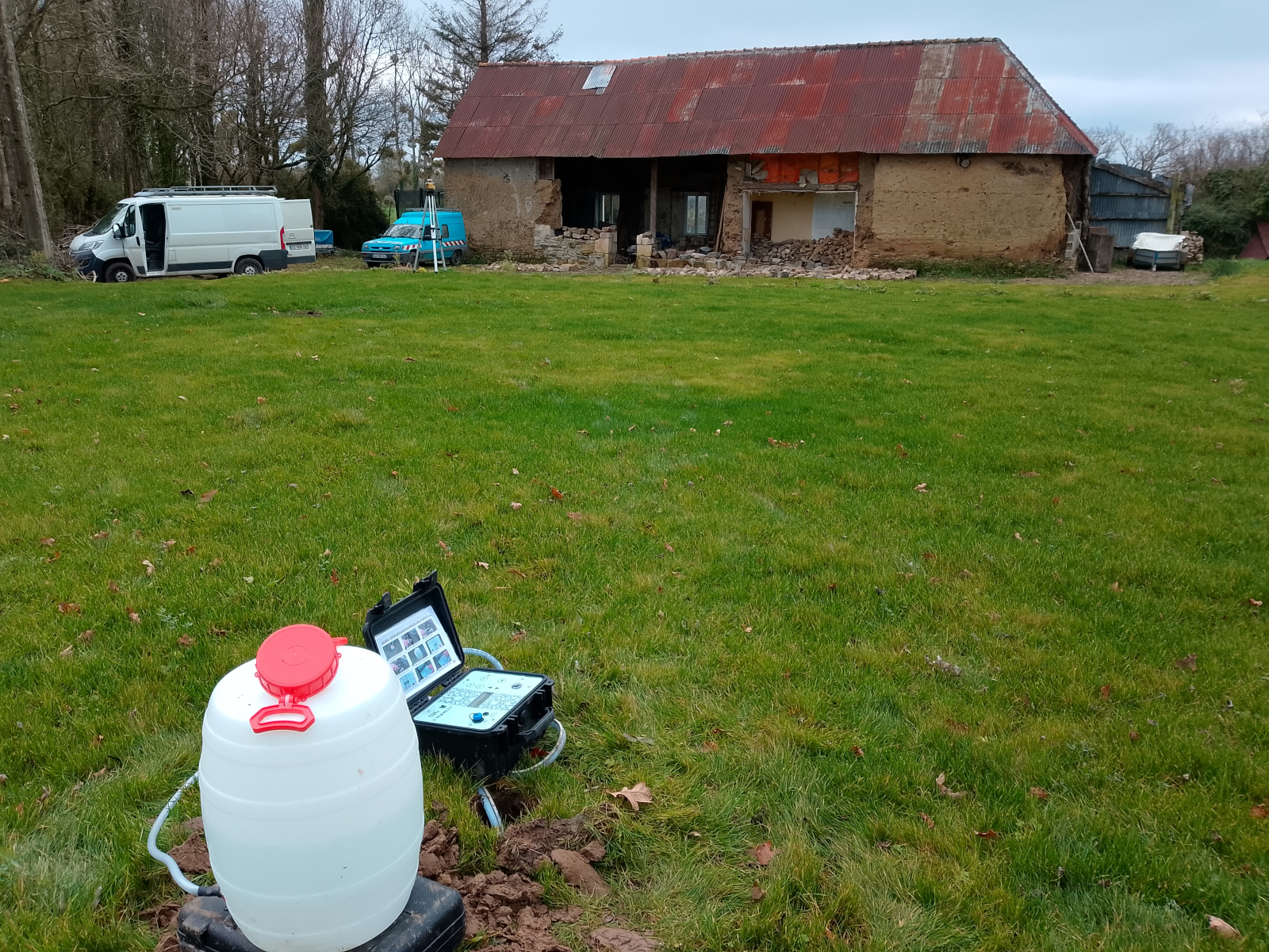 Réalisation d'une étude de sol et de définition de filière d'Assainissement Non Collectif à Laulne 50430 le 15/12/2025. Le rapport d'étude a été rédigé le 05/01/2026.