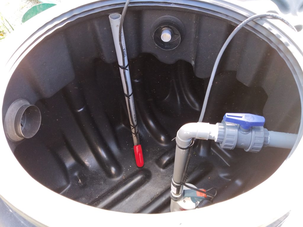 - Poste de relevage / refoulement sur-dimensionné + alarme : Le poste de relevage est composé d'une cuve d'au minimum 1.5 m3, avec à l'intérieur 1 ou 2 pompes et un flotteur d'alarme. Ainsi, si la pompe lâche, ou en cas de panne de courant, le flotteur s'enclenche et fait retentir une alarme. Vous êtes alertés d'une maintenance à effectuer rapidement, d'une panne de courant, ou d'un flux hydraulique trop important. Toutefois, le volume du poste encore disponible permet de couvrir 2 ou 3 jours, voire plus, selon dimensionnement et usage ! Pas de panique !