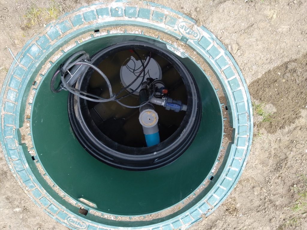 Ici, notre client à choisi pour partie la tranquillité : Poste de refoulement 1.5 m3, mono-pompe, + alarme sonore et visuelle (alarme avec autonomie de 2 jours en cas de panne de courant).