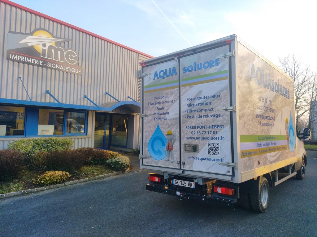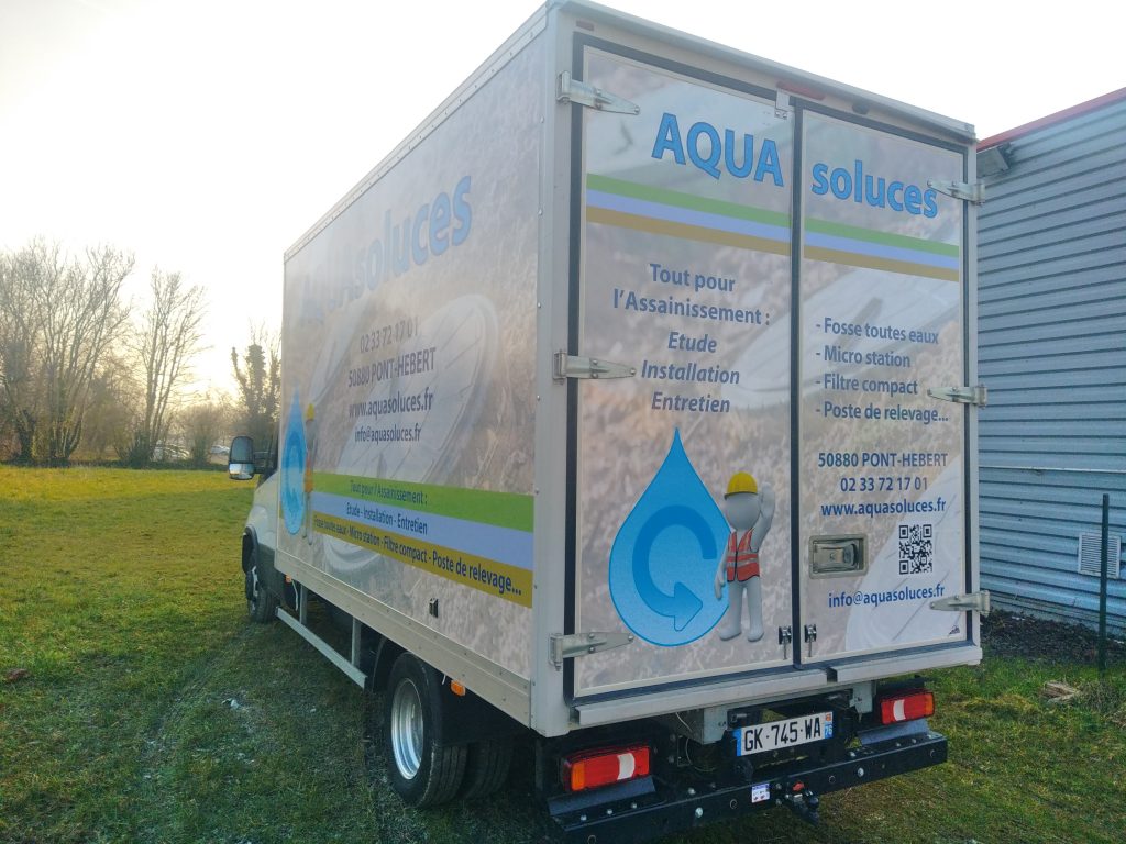 Nous venons de récupérer notre camion atelier dédié à l'Assainissement après une semaine passée dans les mains de IMC Publicité à Coutances.