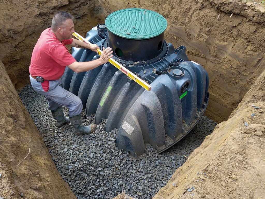 Un exemple ici, lors d'un chantier à Saint-Planchers (50400), avec l'installation d'une Micro-station d'épuration Graf EasyOne 7 EH.