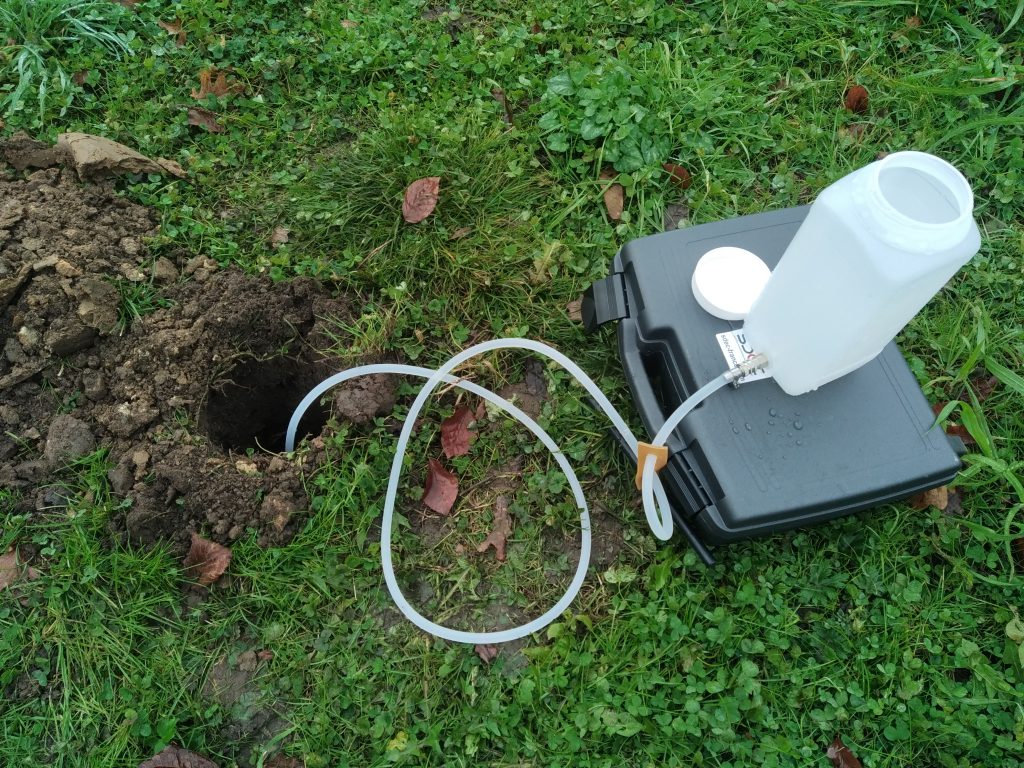 Lors de ce premier rendez-vous, nous procédons à des sondages de sol, test d'infiltration à niveau constant et à un relevé topographique.