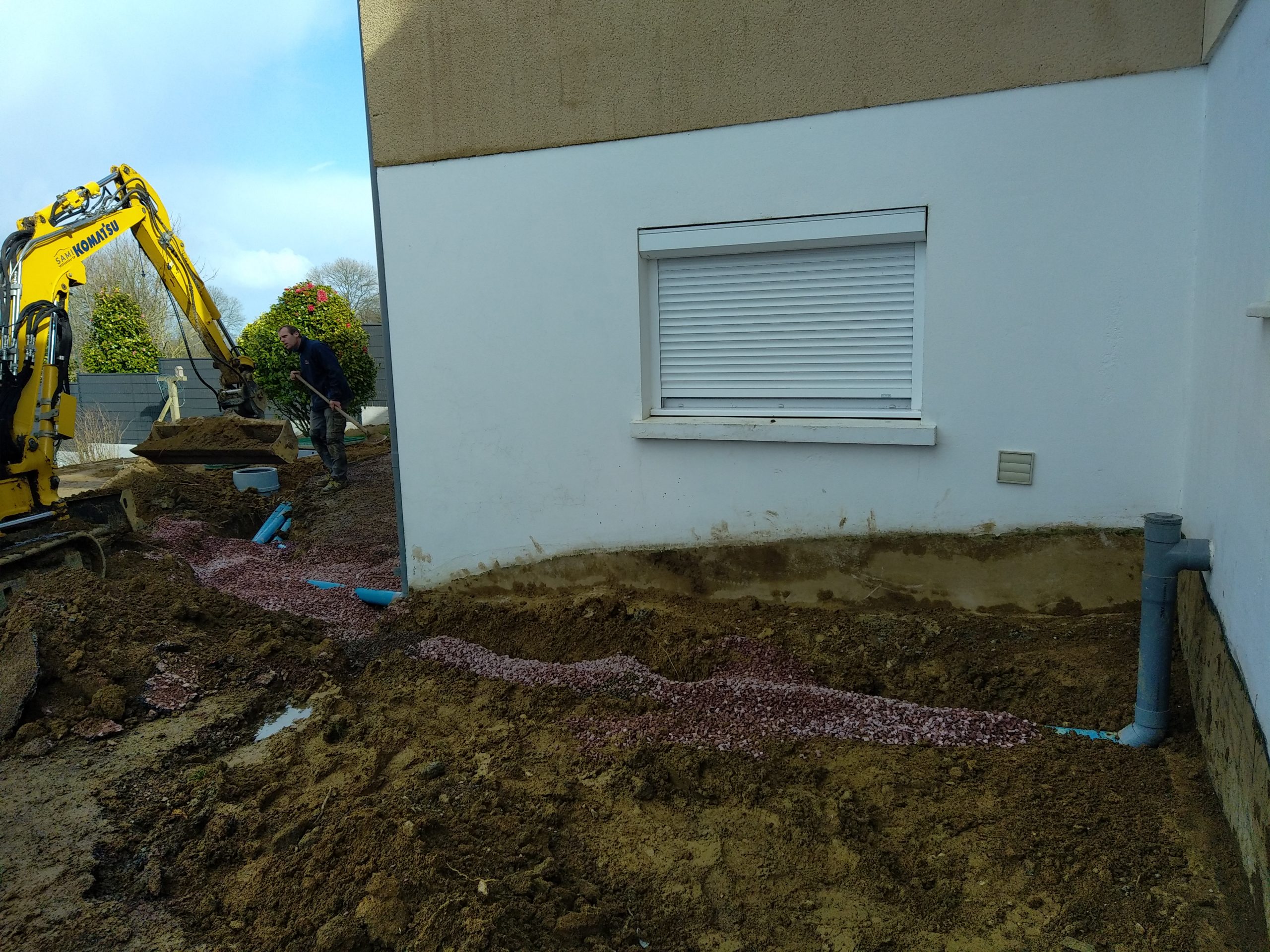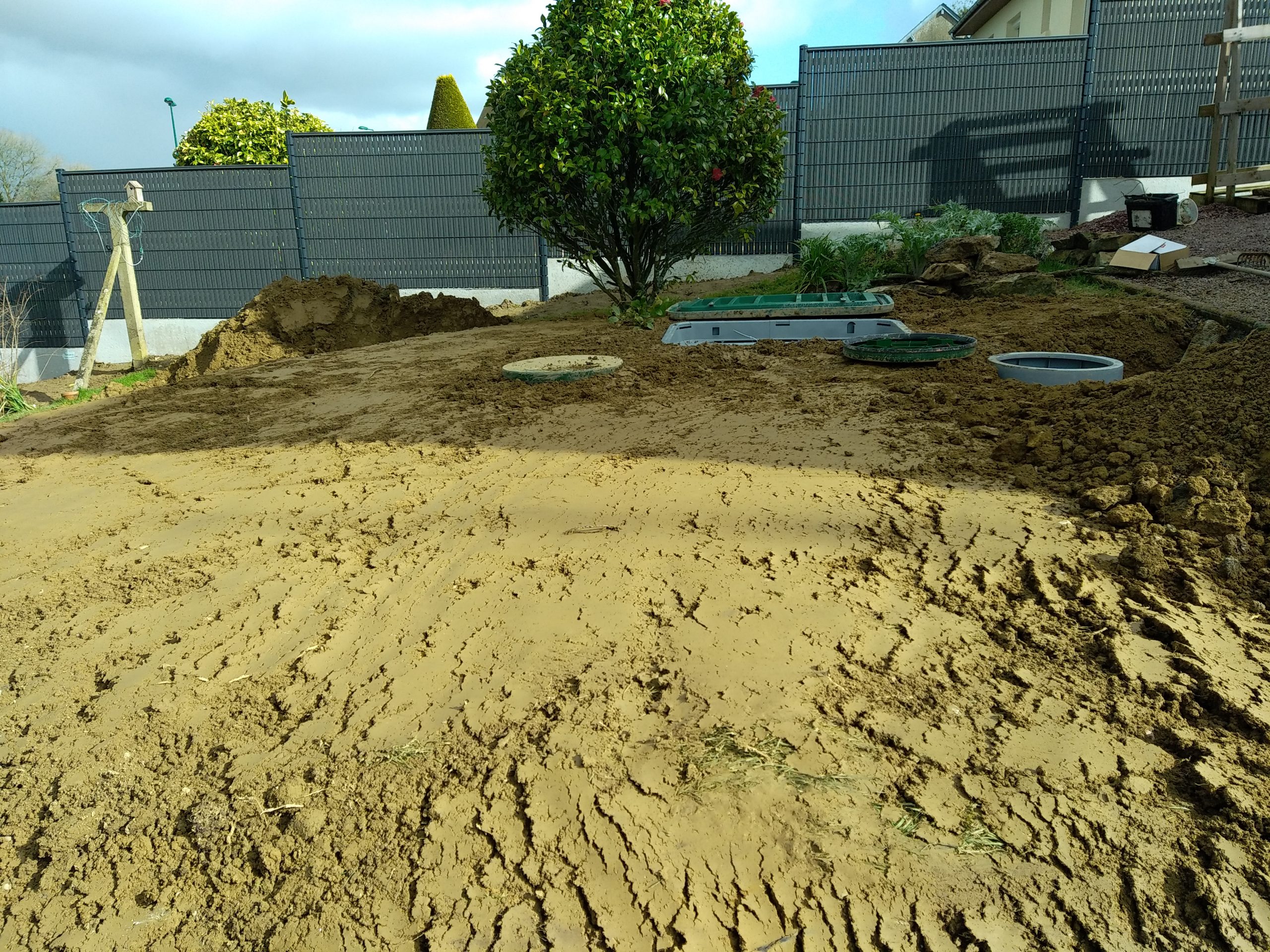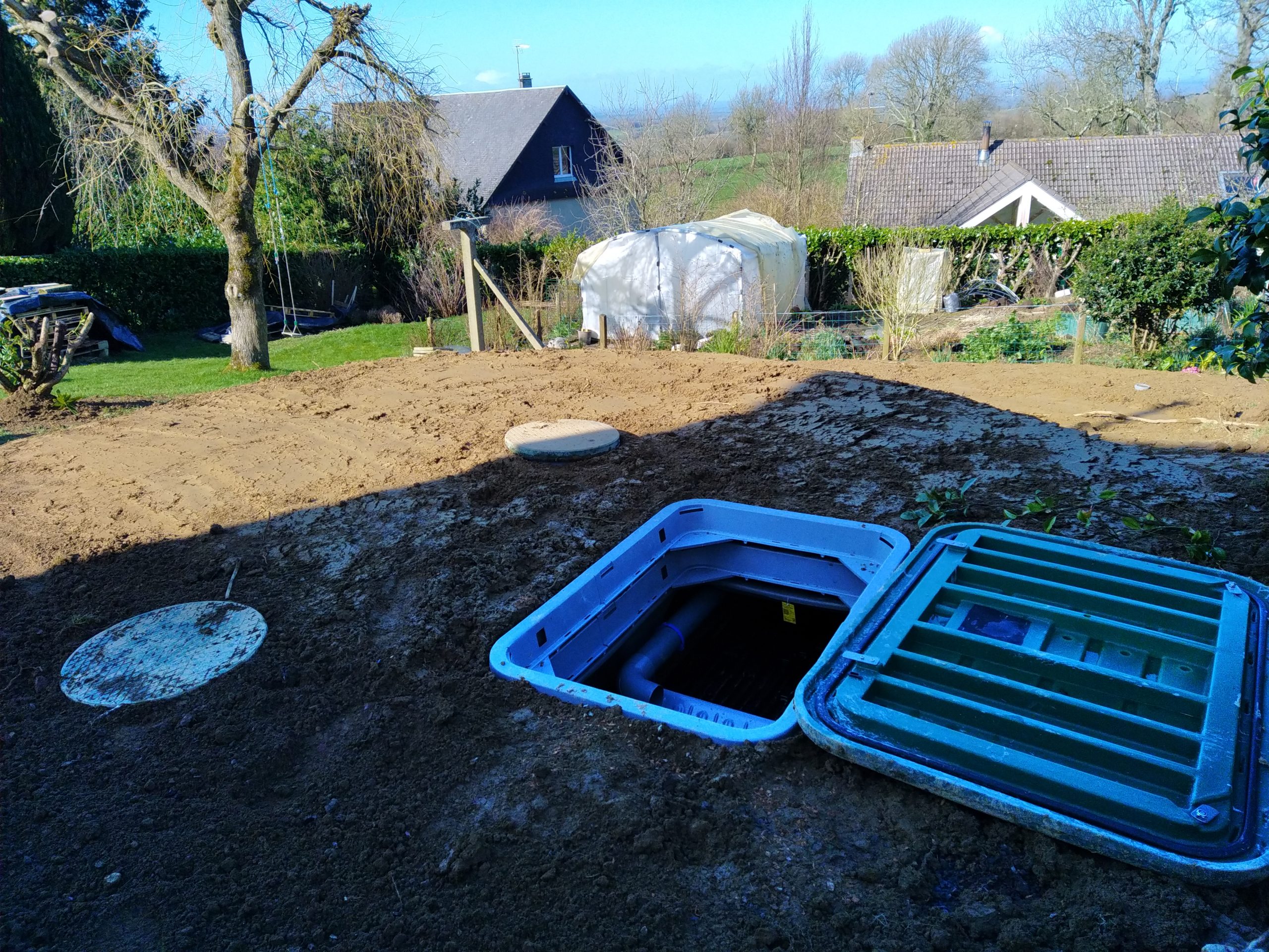 - évacuation gravitaire des eaux traitées, puis infiltration dans le sol et contenue sur la parcelle