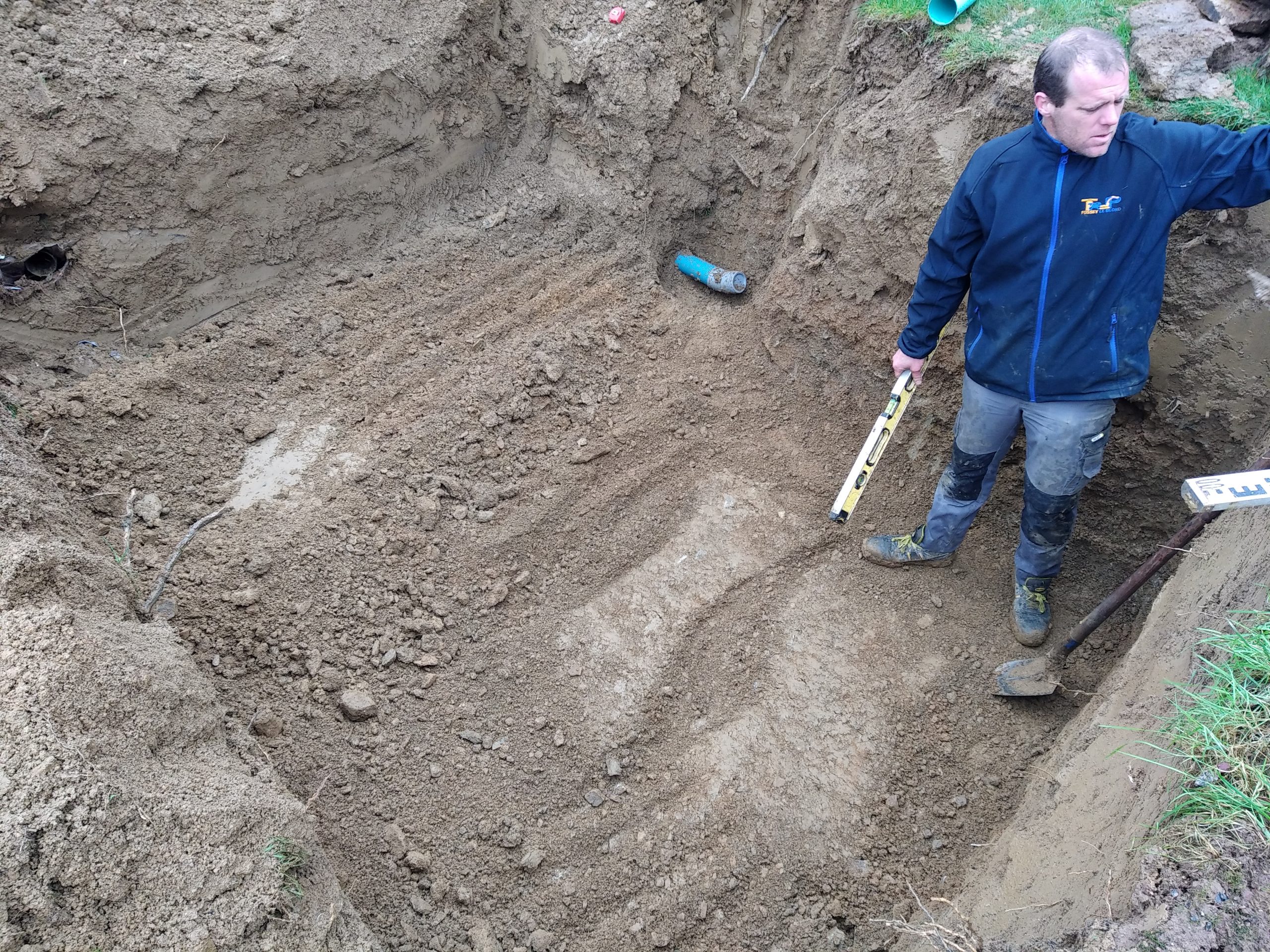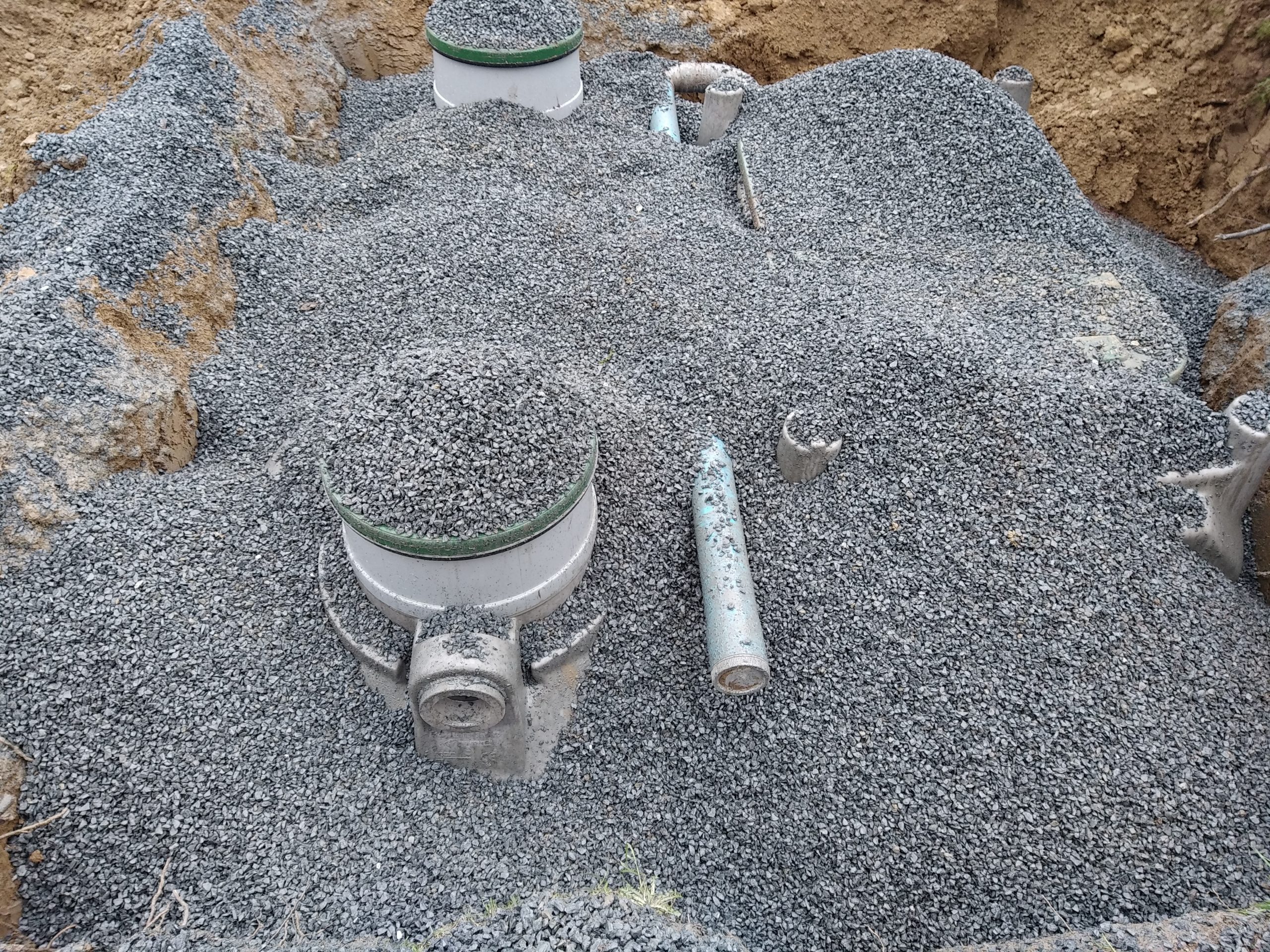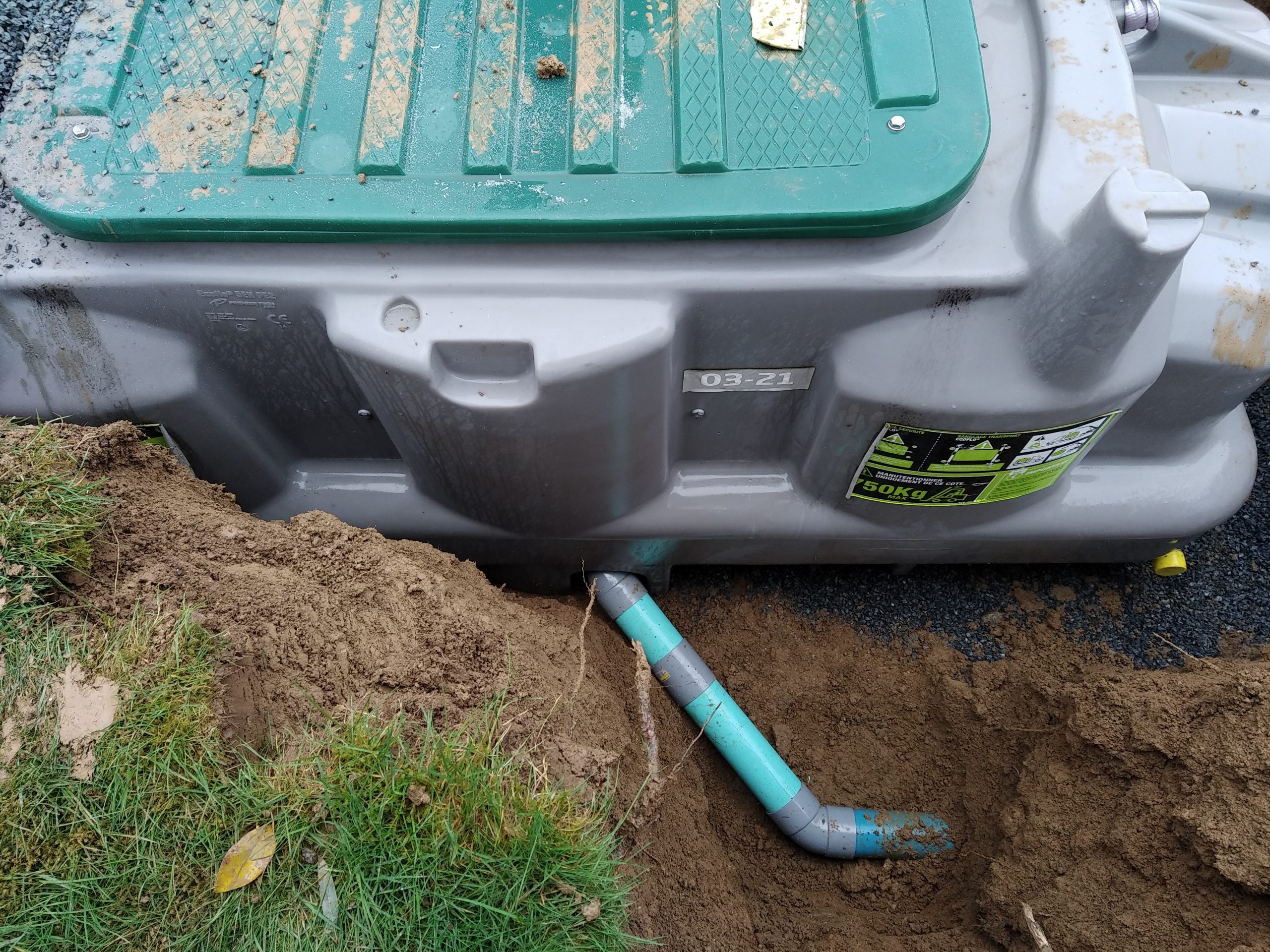 - évacuation gravitaire des eaux traitées, puis infiltration dans le sol et contenue sur la parcelle