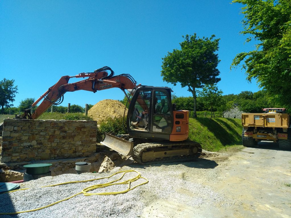 Un chantier d'Assainissement Non Collectif à Brix ( 50700) en collaboration avec la SARL GAMBLIN TP ( agence de Couville 50690 ).