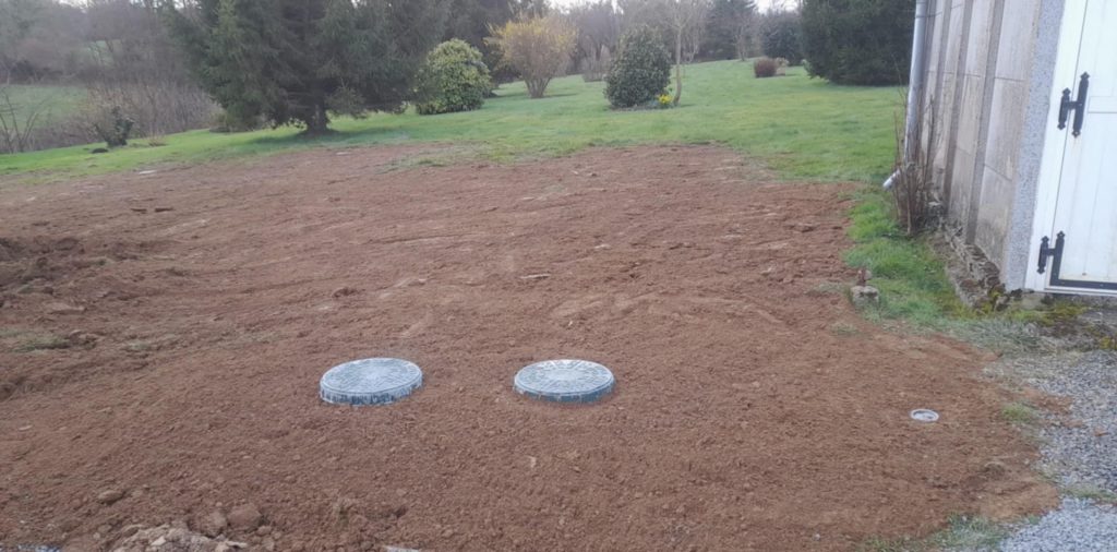 Ainsi, nous prescrirons la mise en place d’une fosse toutes eaux 3000 Litres Epurbloc renforcée, avec préfiltre intégré, de la marque RIKUTEC Germany GmbH & Co. KG, suivie d’un épandage à très faible profondeur et en escalier.
