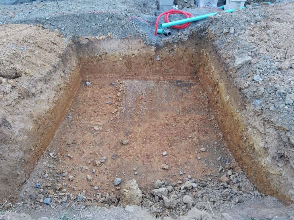 Avec un sol argileux et fortement hydromorphe à très faible profondeur, ce procédé épuratoire est ancré avec du béton dosé à 250 Kg de ciment par m3.