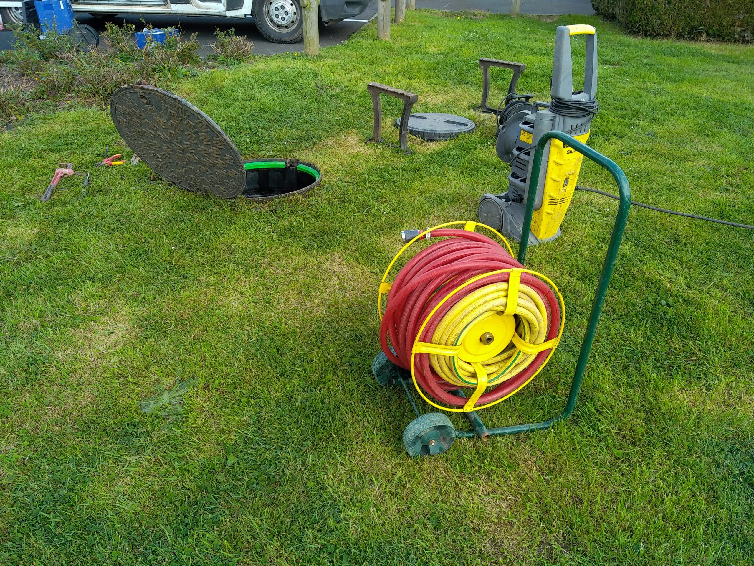 - Extraction du pré-filtre de la fosse toutes eaux et nettoyage haute pression = OK