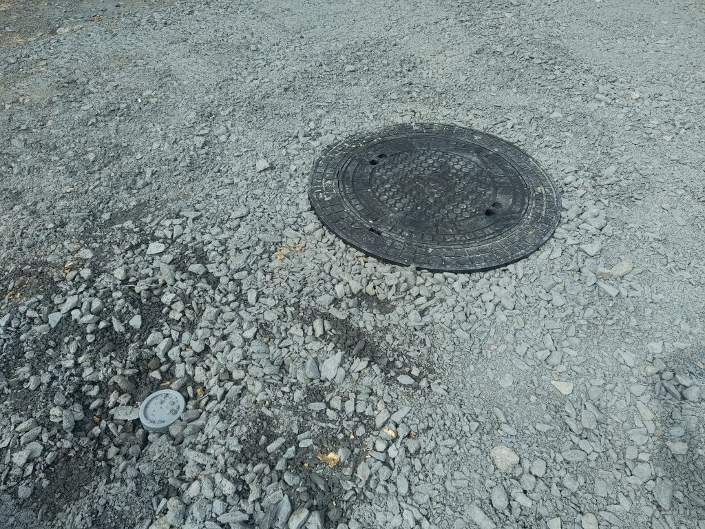 Ici, à La Meauffe ( 50880 ), nous avons été sollicités pour concevoir un assainissement non collectif avec un recouvrement de 1 mètre, avec la présence d'eau dans le sol et avec le passage de véhicules jusqu'à 3.5 tonnes.