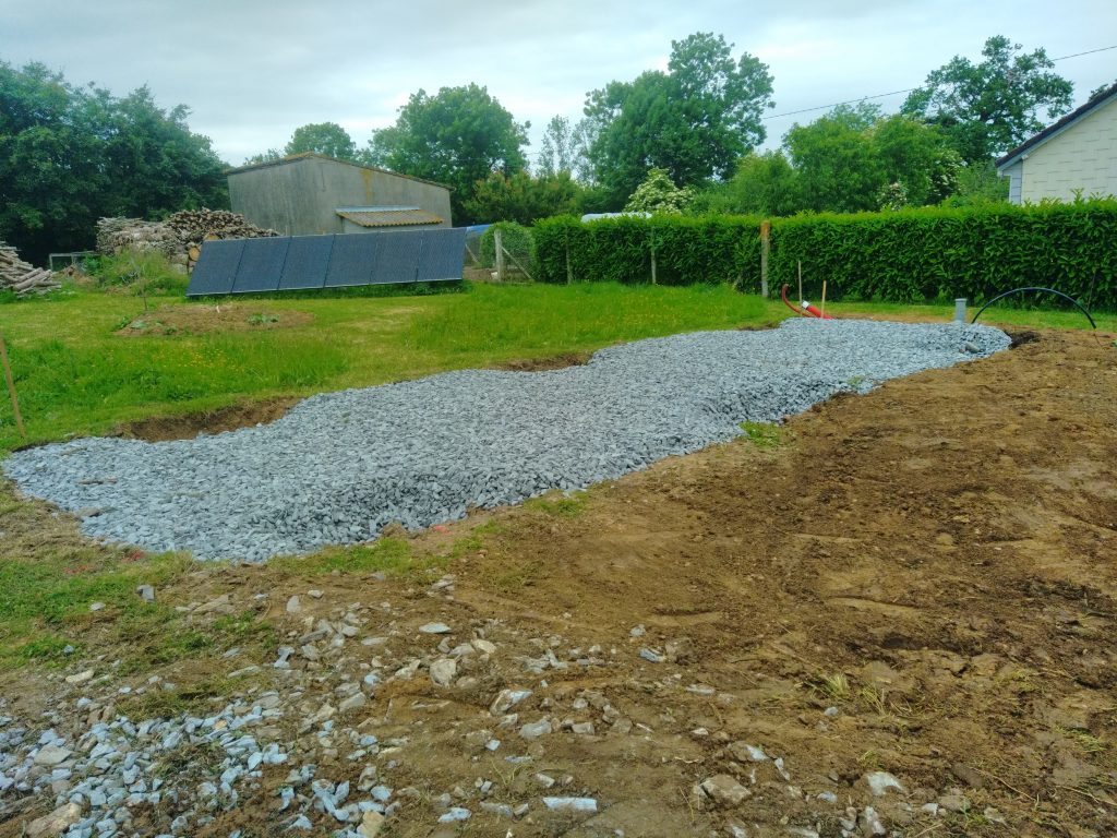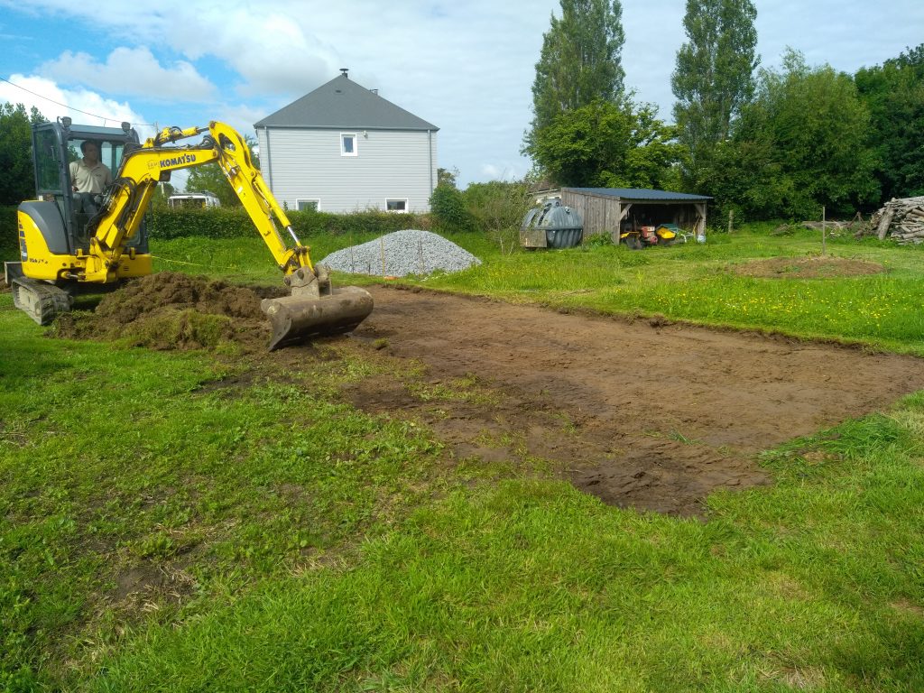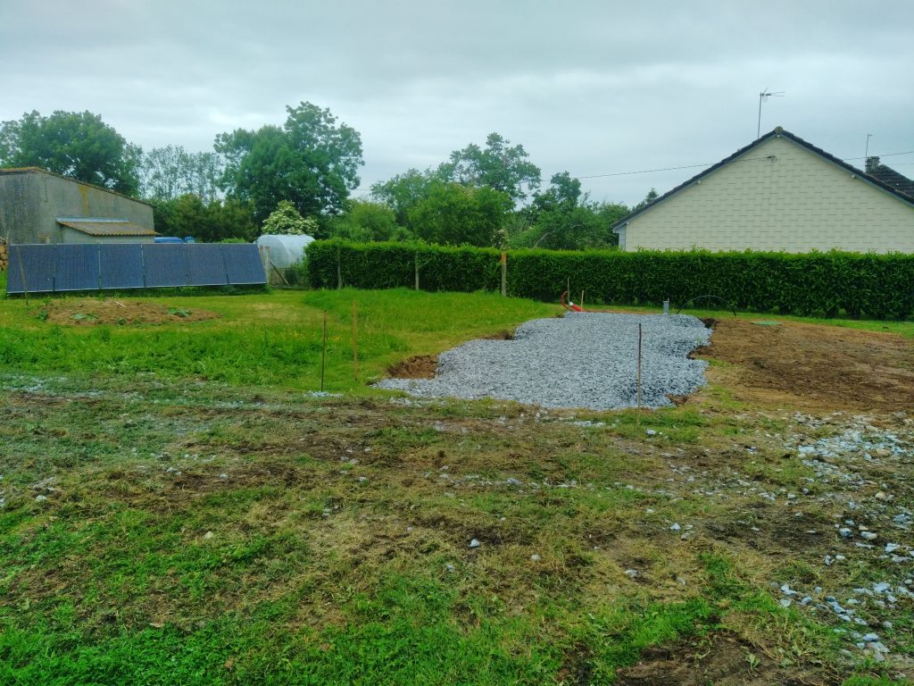 La prochaine étape, avec le lot maçonnerie, sera réalisée prochainement, consistant en la création de plots en béton sur lesquels reposera la Natibox.