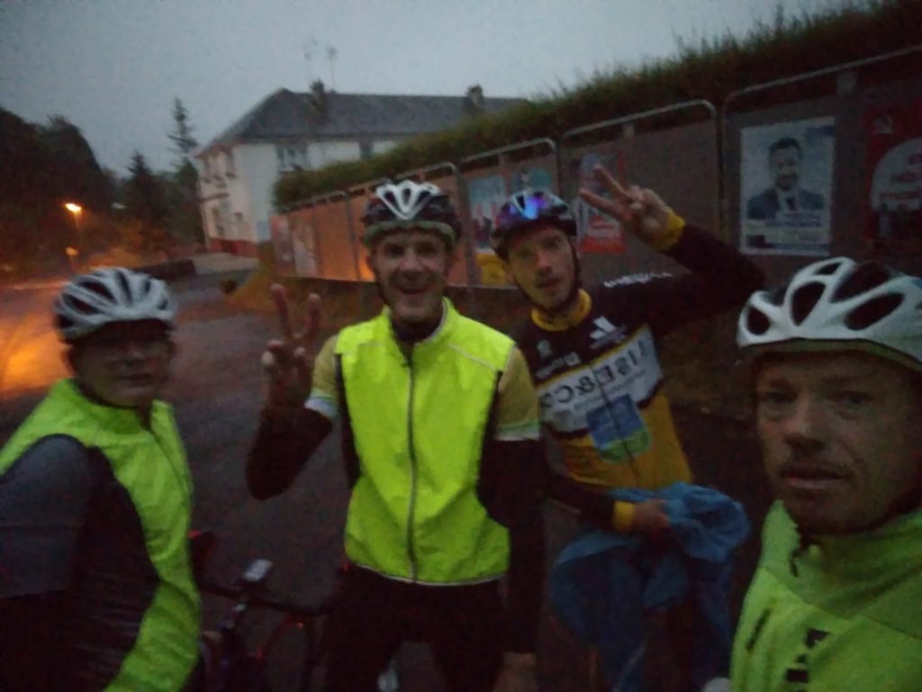 Il est 5h30, le temps est tristounet, bien couvert, humide ... Les routes sont trempées, gravillonneuses, par l'épisode orageux de la nuit. Mais le rendez-vous est maintenu. Les fidèles sont présents, pour le départ de ces 80 premiers Kilomètres.