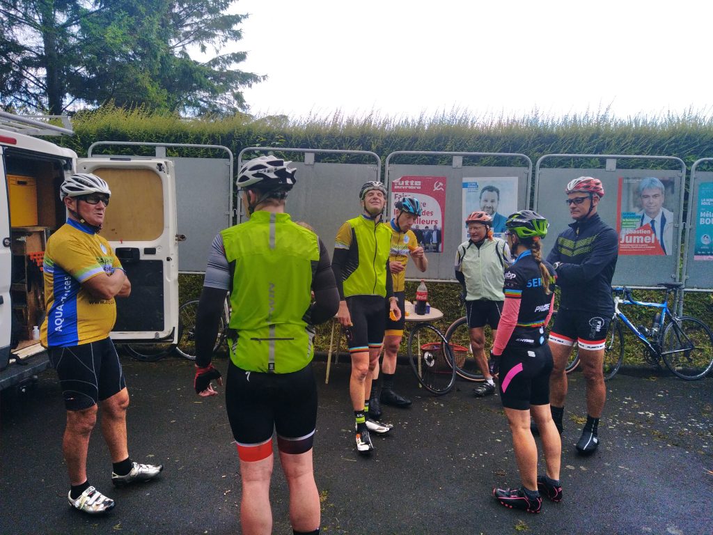 Puis, après 80 Km à 29.5 Km/h de moyenne, et 1 crevaison, ces 4 cyclistes retrouvent le reste du groupe, à 8h30, pour 120 Km en commun, après un bref ravitaillement.