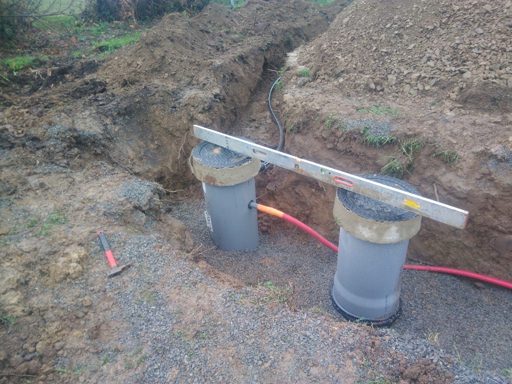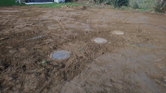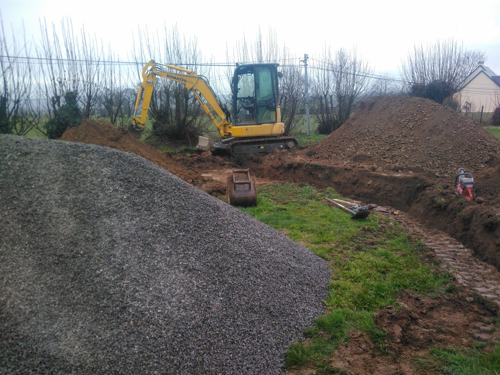 Un nouveau chantier d'Assainissement Non Collectif, réalisé à Sainte Marie du Bois (50640), Commune déléguée de Le Teilleul, par la SARL FOSSEY LE BLOND TP de Saint Georges Montcocq (50000), selon la conception et les directives de la SARL AQUAsoluces.
