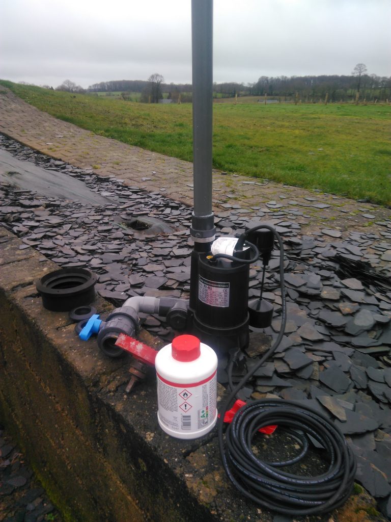 - Poste de relevage / refoulement AQ-R1 AQUAsoluces, équipé d'une pompe BIBUS à flotteur vertical, d'un clapet anti-retour et d'une vanne union permettant un démontage et une extraction aisée de la pompe !