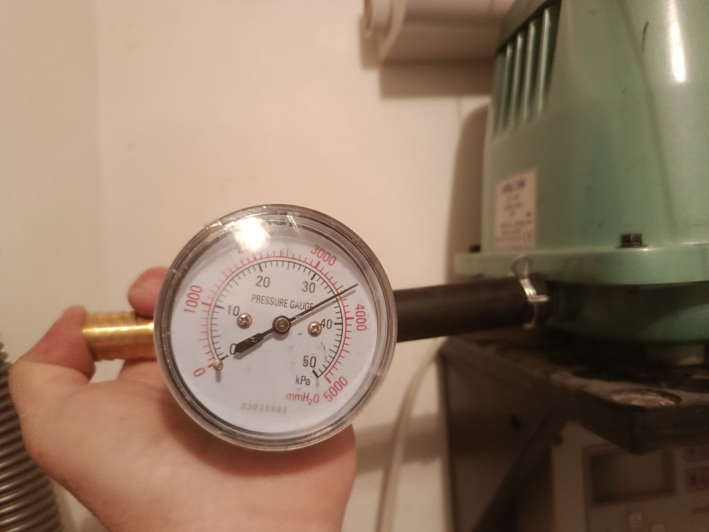 - Entretien du compresseur avec le changement des membranes, le nettoyage du filtre à air et la vérification de sa pression de service ( à l'aide d'un manomètre 500 mBar ).