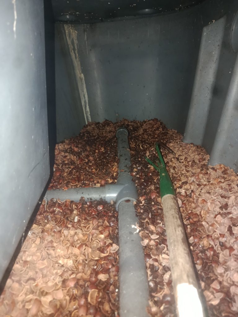 Lors de cet entretien, nous effectuons une mesure de boue primaire dans la fosse toutes eaux, nous nettoyons le pré-filtre, nous scarifions le massif de coquilles de noisettes concassées, nous lavons le système d'auget flottant et nous extrayons et nettoyons la pompe de relevage Pedrollo Top 3 GM Vortex et son clapet anti-retour.