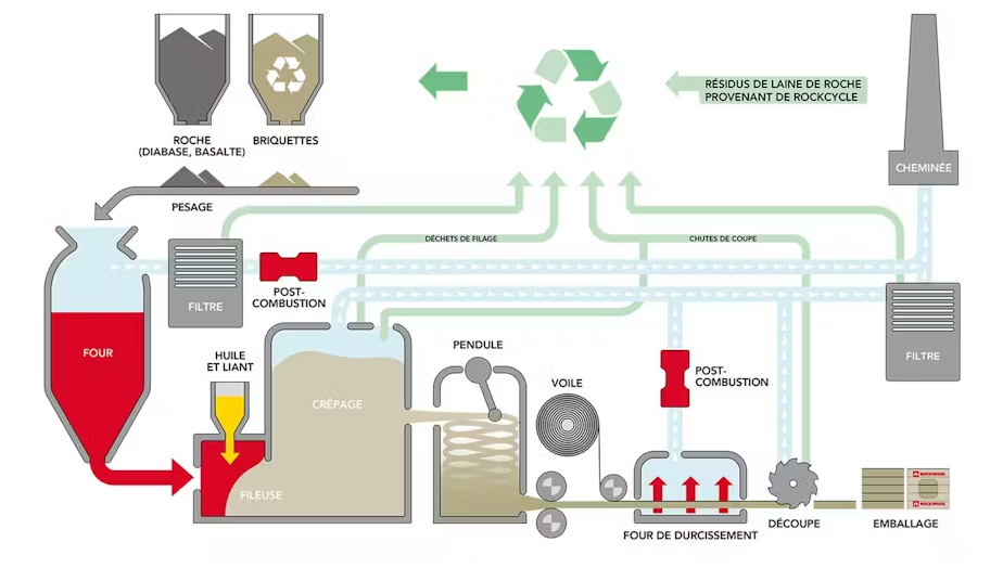 Processus de fabrication de la laine de roche ( source : ROCKWOOL )