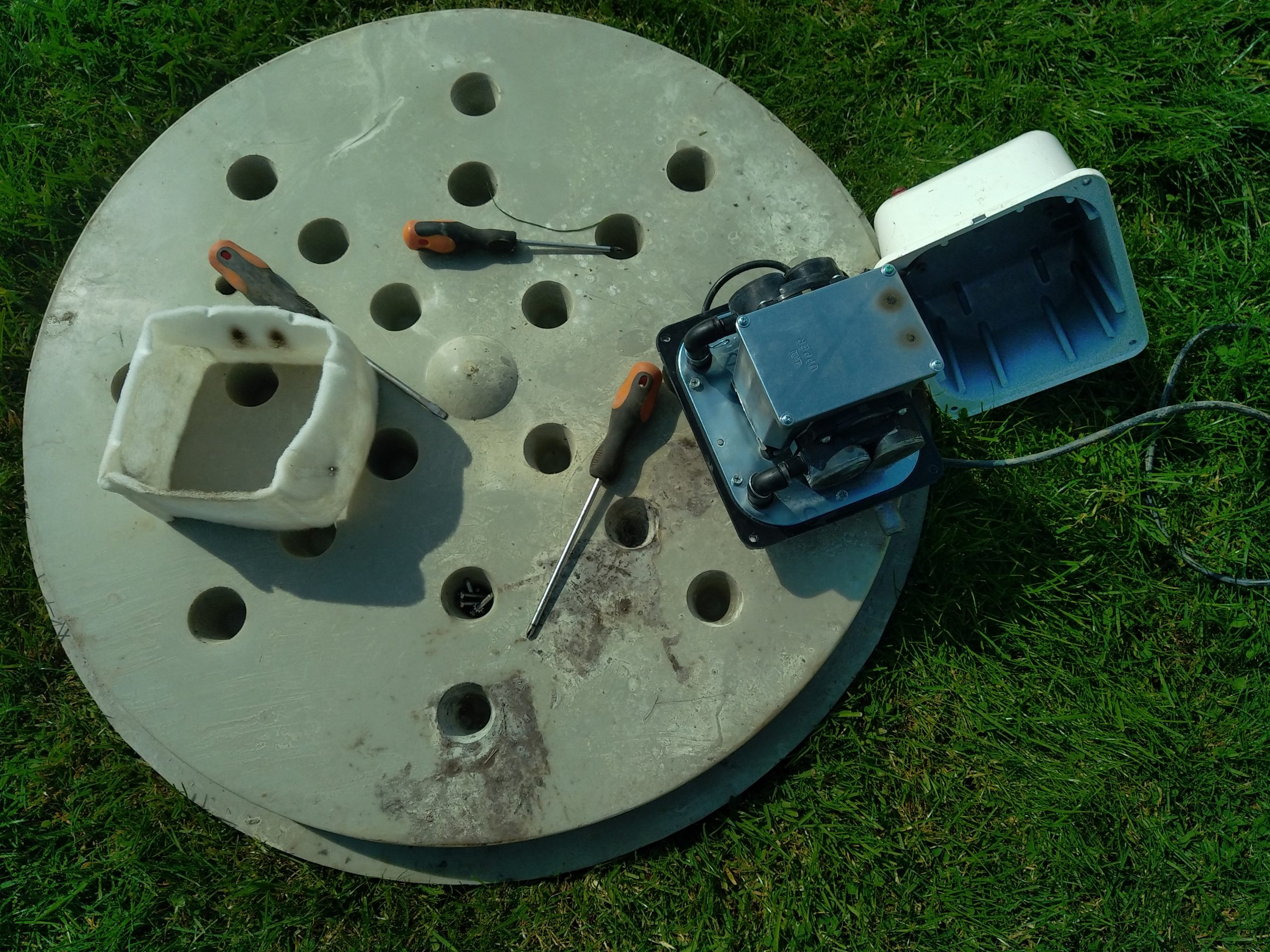Enfin, nous remarquons un bullage trop faible dans le réacteur biologique à culture fixée. Les diffuseurs d'air semblent bouchés. Ceux-ci seront alors prochainement changés, après vidange intégrale de la Micro-station permettant l'intervention.
