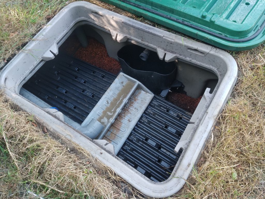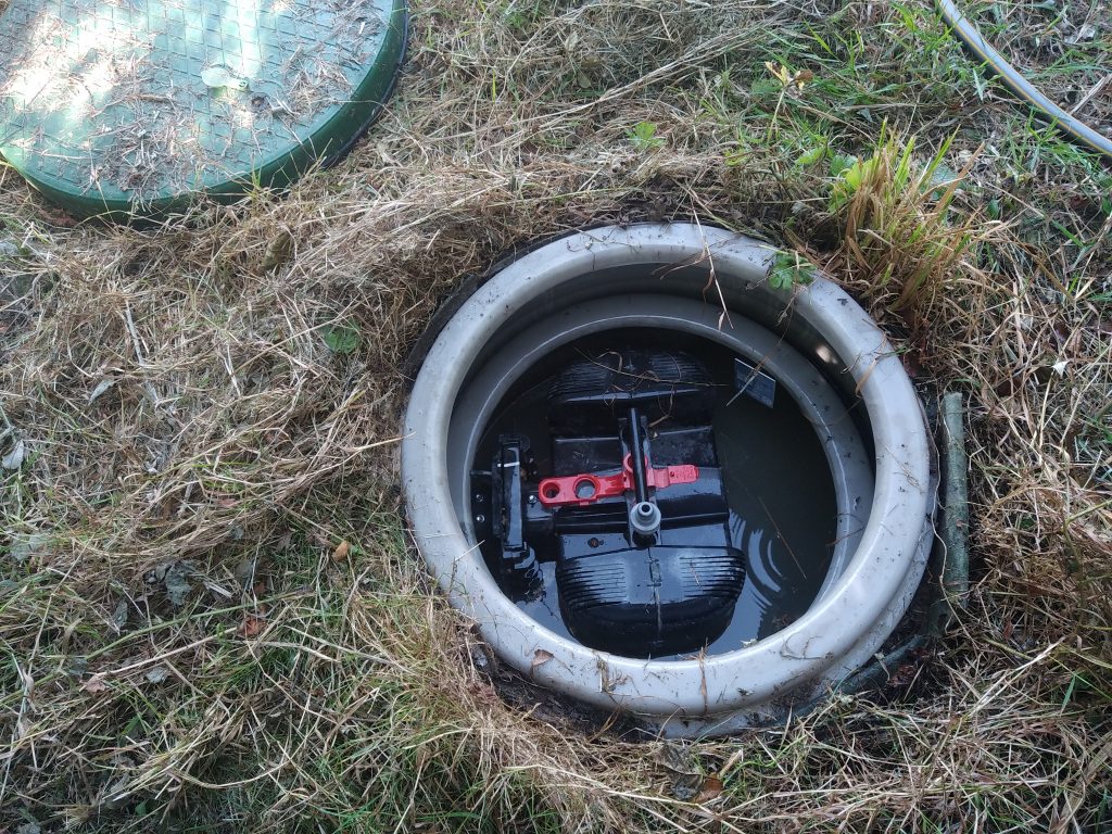 Ce poste de refoulement injecte les eaux usées brutes d'une habitation vers la fosse toutes eaux d'un filtre compact coco Ecoflo PE2 pack 5 EH sortie basse.