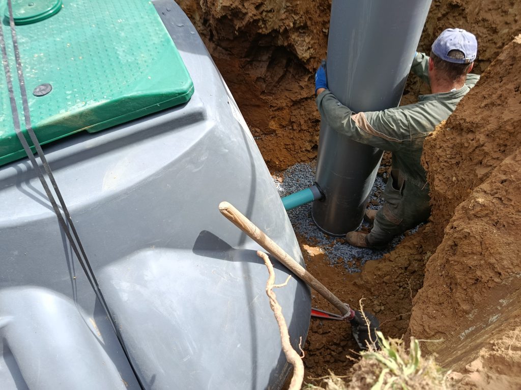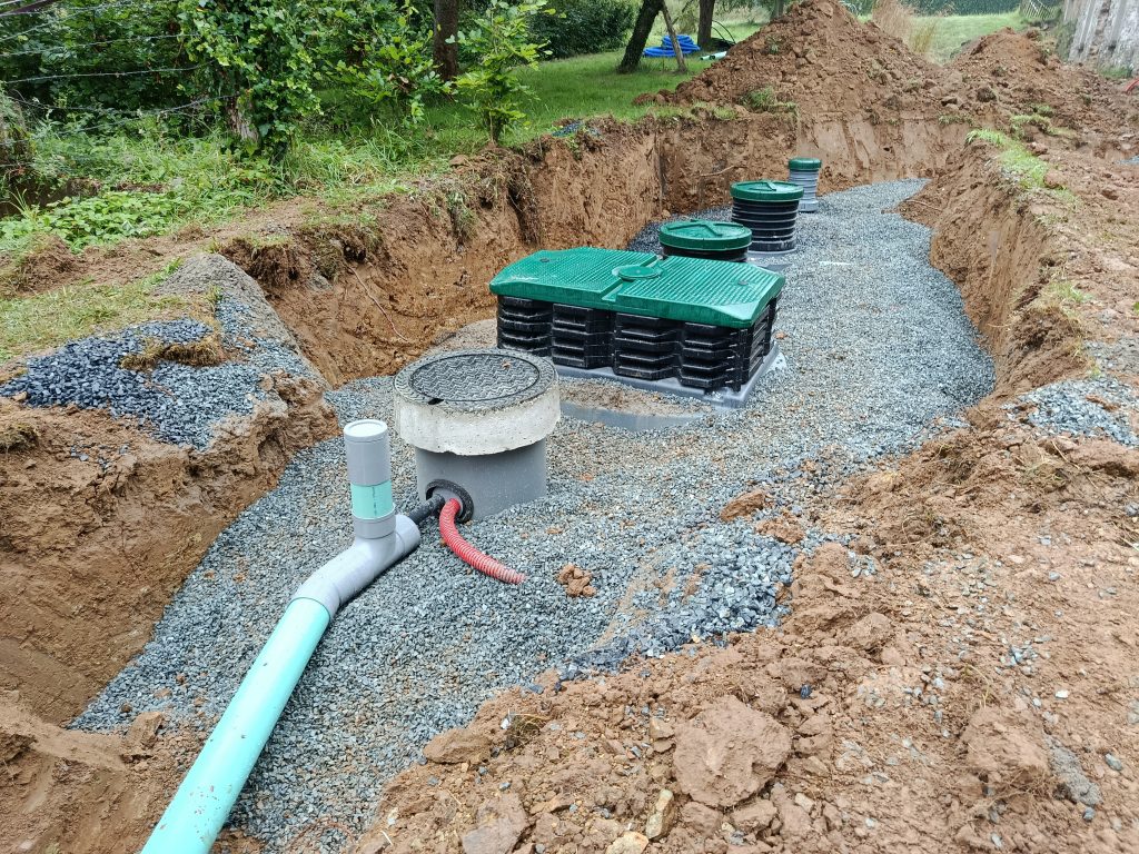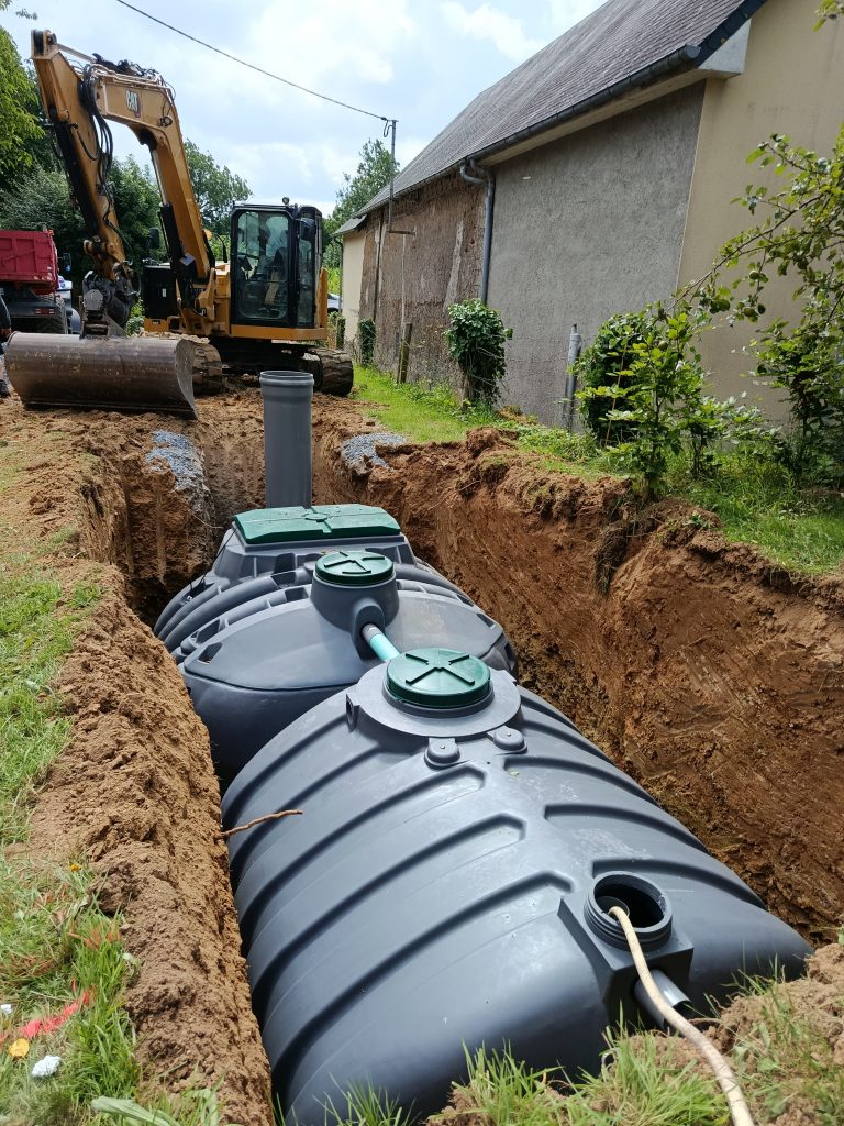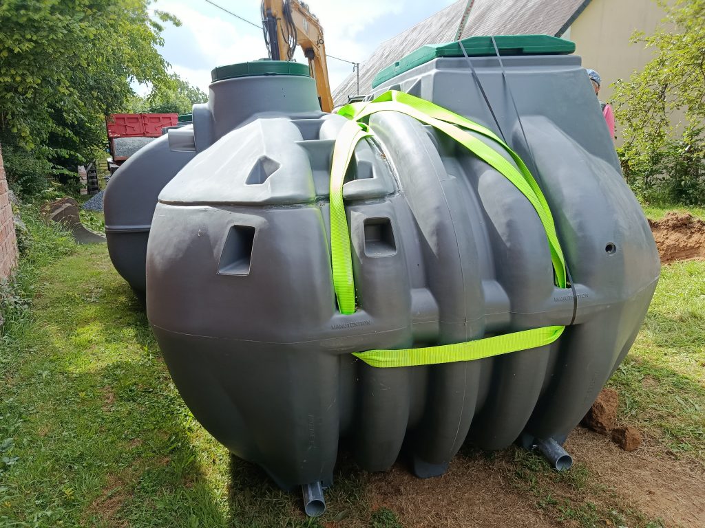 Nous accompagnons notre partenaire terrassier Erick HAMOND, de La Meauffe ( 50880 ), pour la mise en place, à La Rondehaye ( 50490 ), d'un filtre compact Hydreal Hydrofiltre 7 EH, à base de coquilles de noisettes concassées, et d'un poste de relevage.