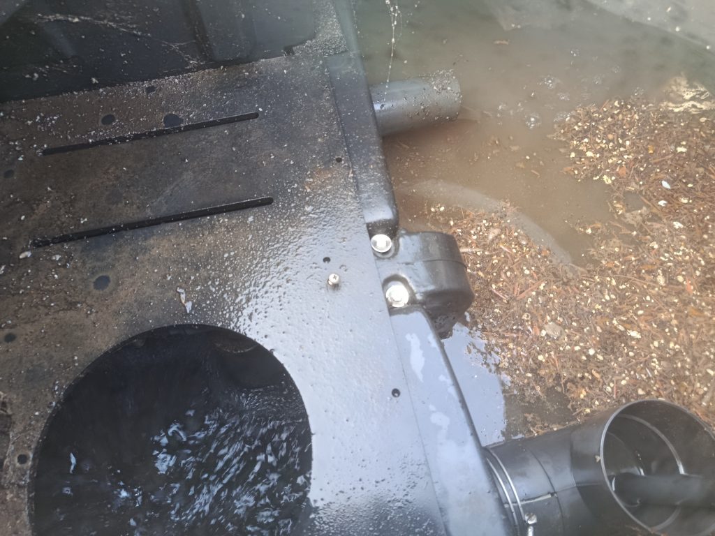 C'est lors de cette dernière opération de recirculation forcée à grand débit que nous remarquons une anomalie. En effet, la colonne air-lift de recirculation semble bouchée à sa base. Nous procédons alors à son extraction et à son lavage. Après quelques minutes tout rentre en ordre !