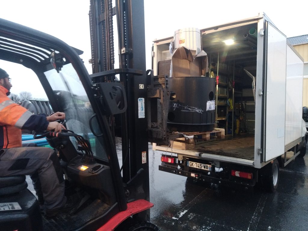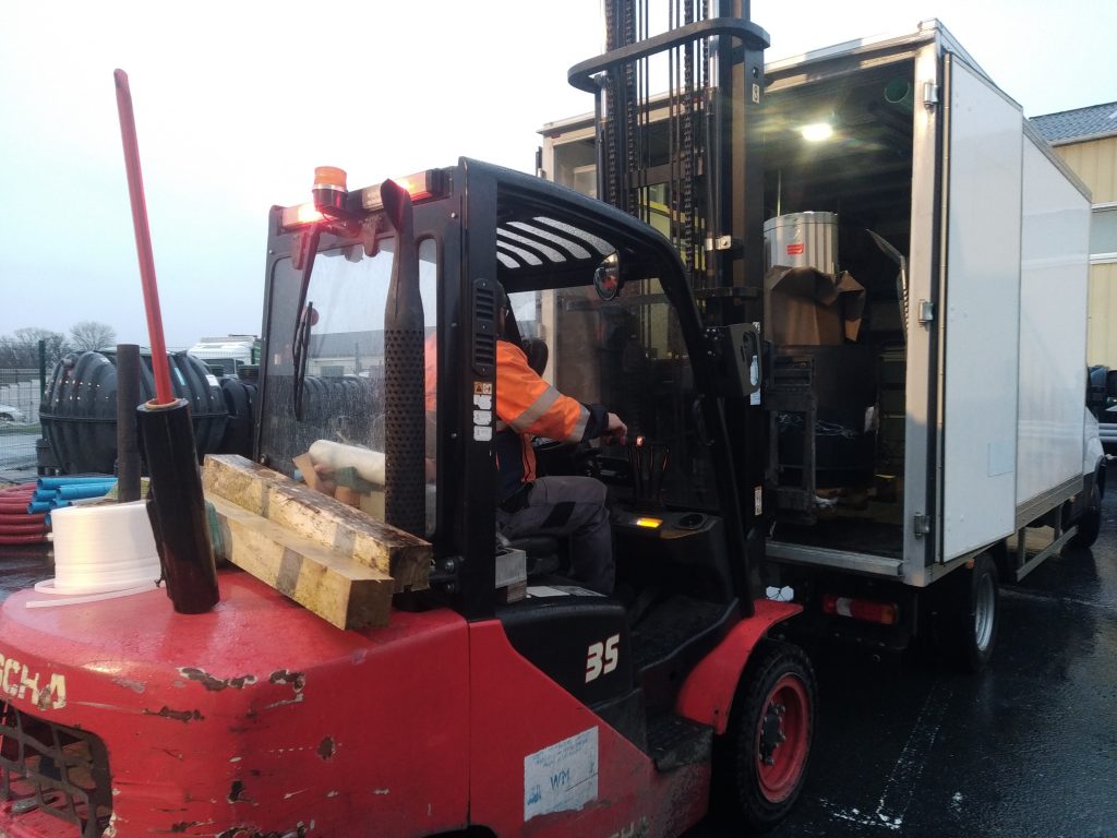 Nous en profitons aussi pour retirer et charger une palette chez l'un de nos fournisseurs : " Il reste de la place ! " .