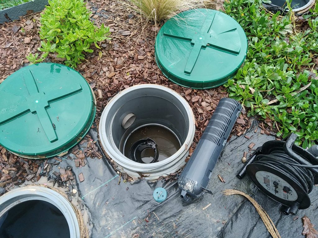 - Une fosse toutes eaux : décantation des boues et séparation des graisses, pré-traitement anaérobie