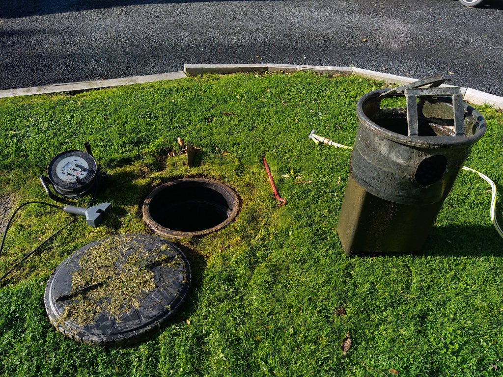 Puis on extrait et on nettoie au jet d'eau le préfiltre de la fosse toutes eaux.