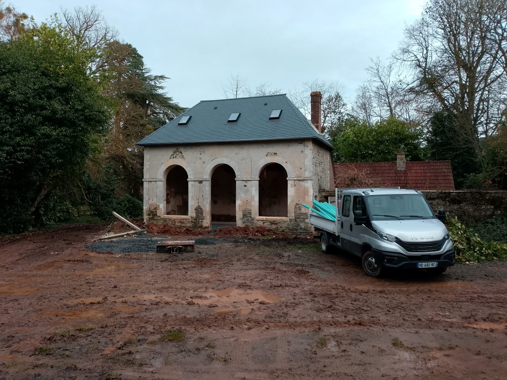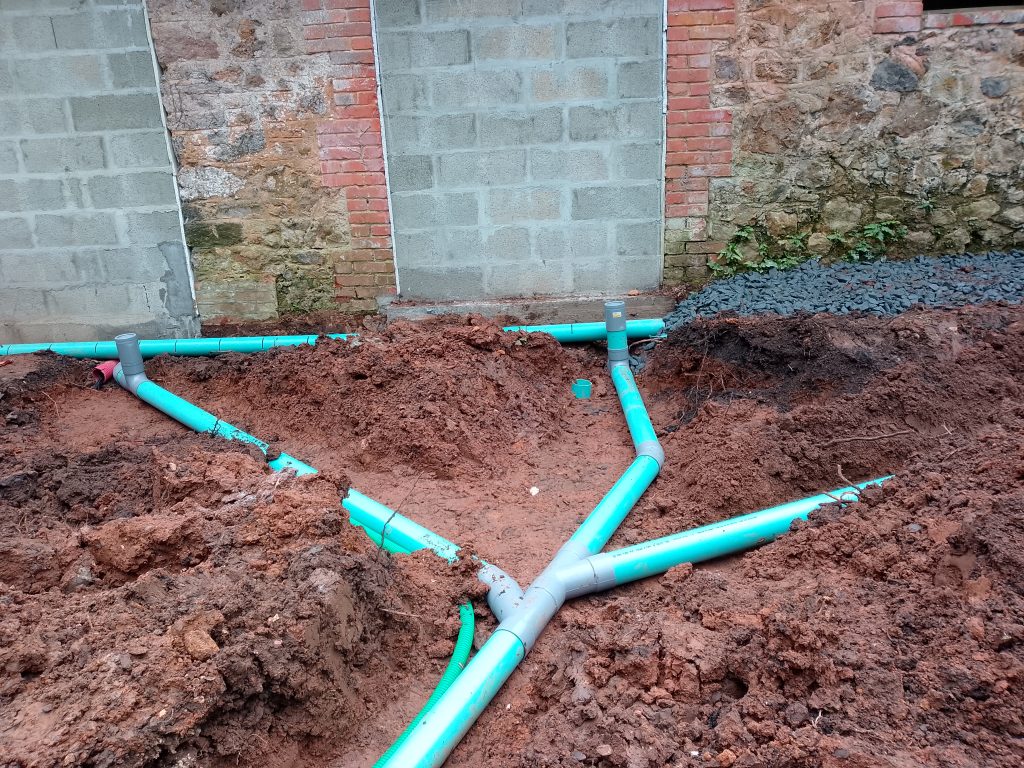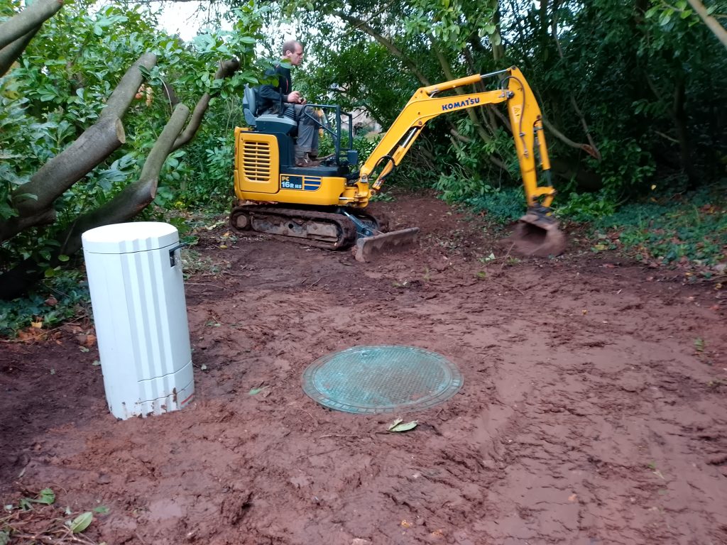 Un exemple de pose d'une micro-station Graf easyOne 7 EH agréée ( selon notre étude de sol et de définition de filière ), en compagnie de la SARL Fossey Le Blond TP de Saint-Georges-Montcocq :