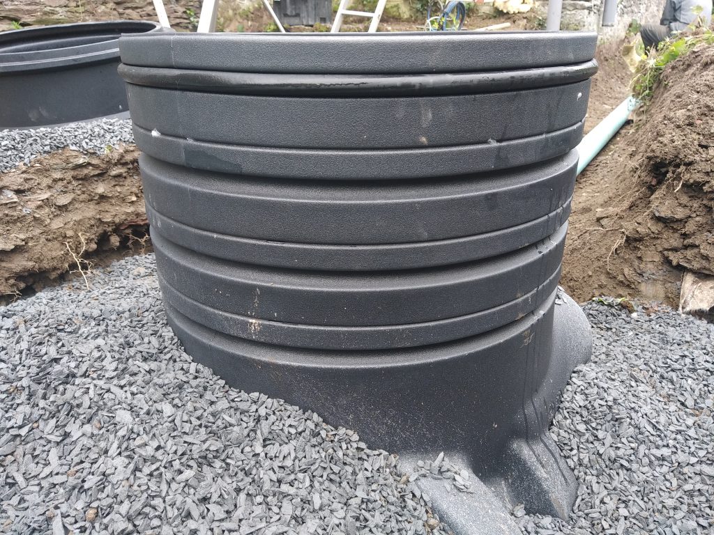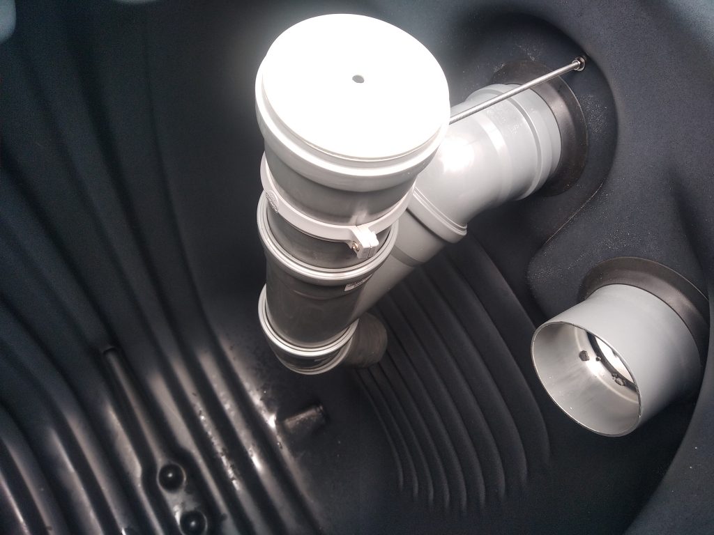 Ce filtre compact monobloc, ici posé en sortie basse, est aussi disponible en sortie haute, avec poste de relevage / refoulement associé, pour les versions 4 EH, 5 EH et 6 EH ( Équivalents Habitants ).