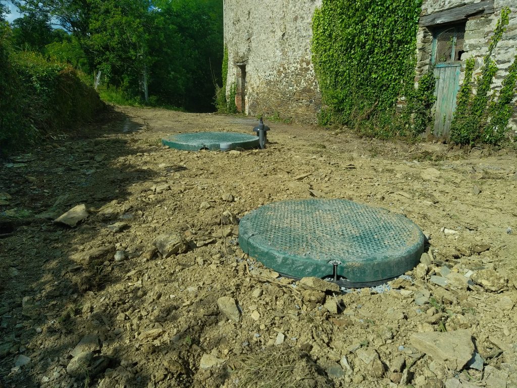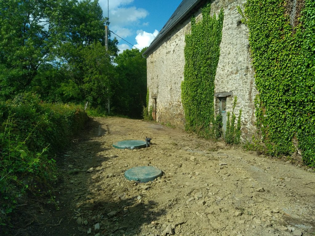 De plus, le dénivelé de la parcelle permet la mise en place d'un système totalement gravitaire, sans pompe et sans consommation d’électricité. Les eaux traitées sont ensuite évacuées gravitairement par infiltration dans le sol et contenue sur la parcelle.
