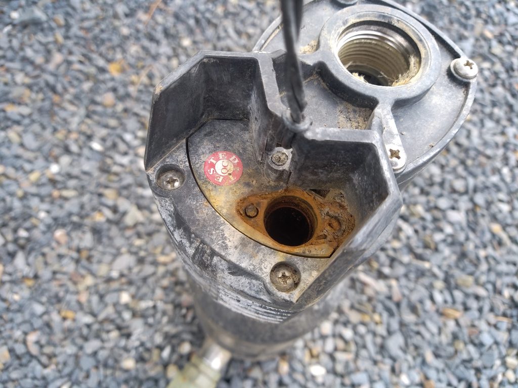 Cette pompe est aujourd'hui hors service, après quelques années de fonctionnement, par défaut d'isolement, faisant ainsi disjoncter l'installation électrique au niveau du différentiel. On constate évidemment un défaut d'étanchéité au niveau du câble électrique.