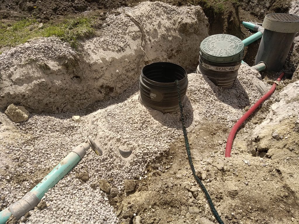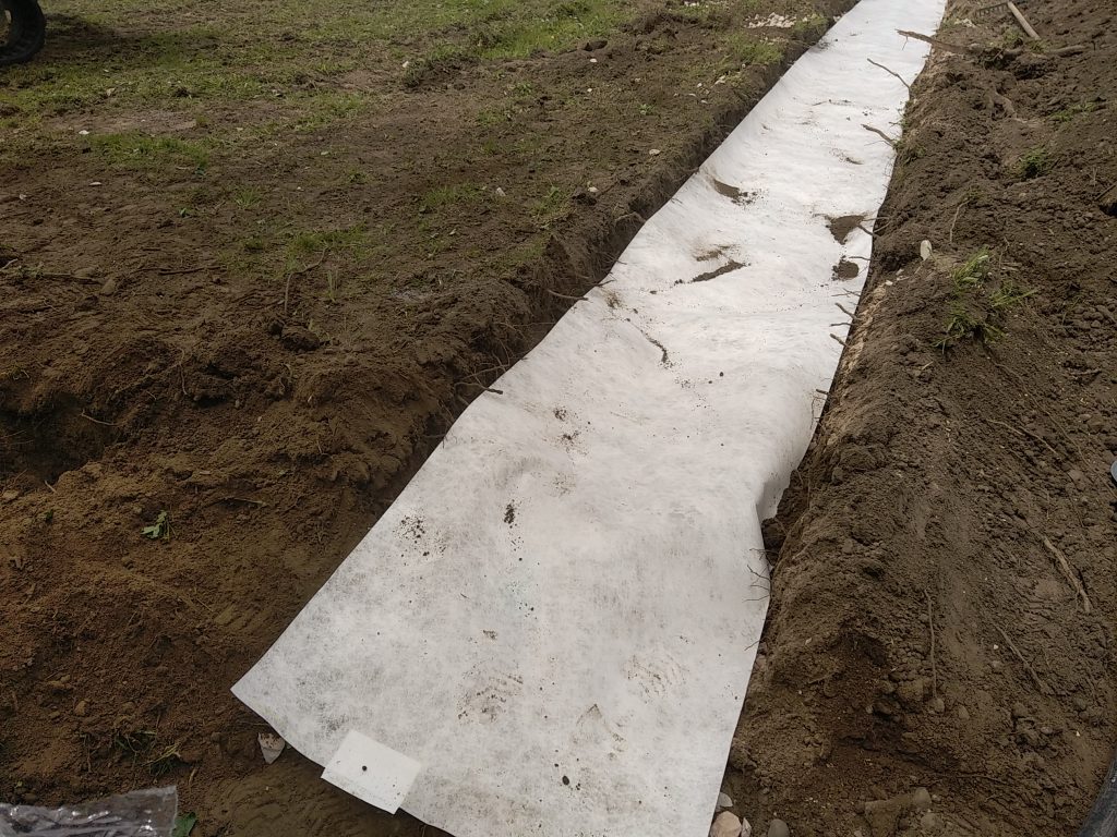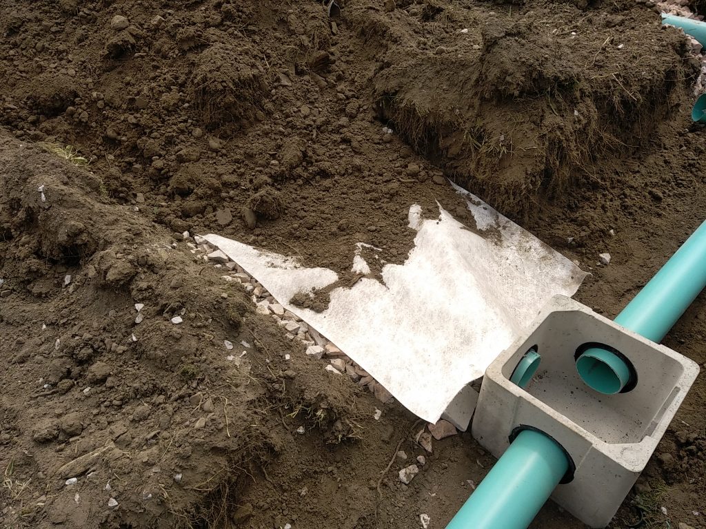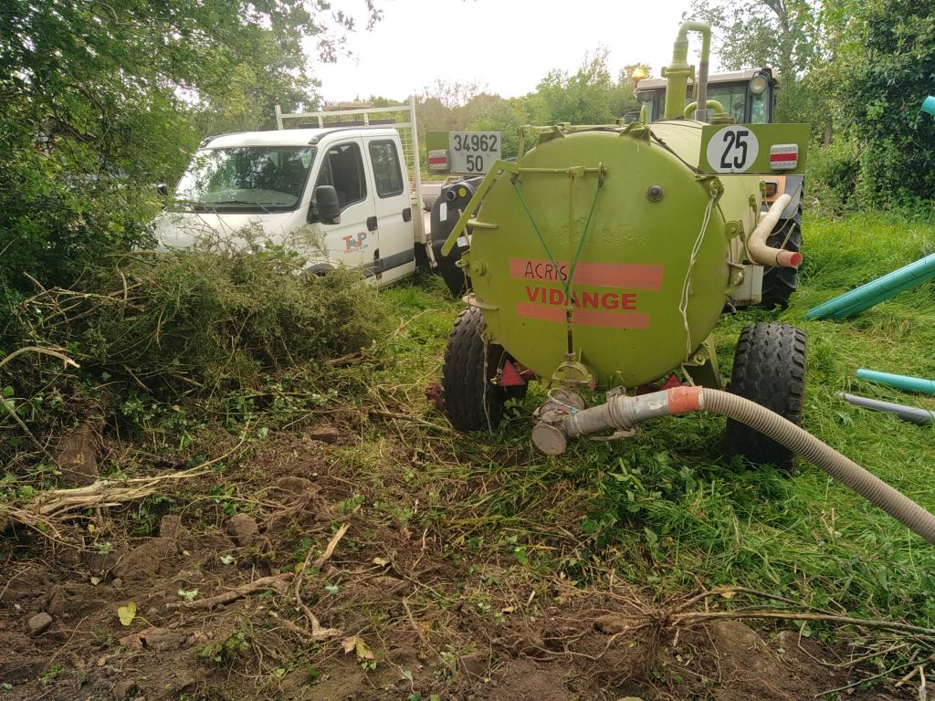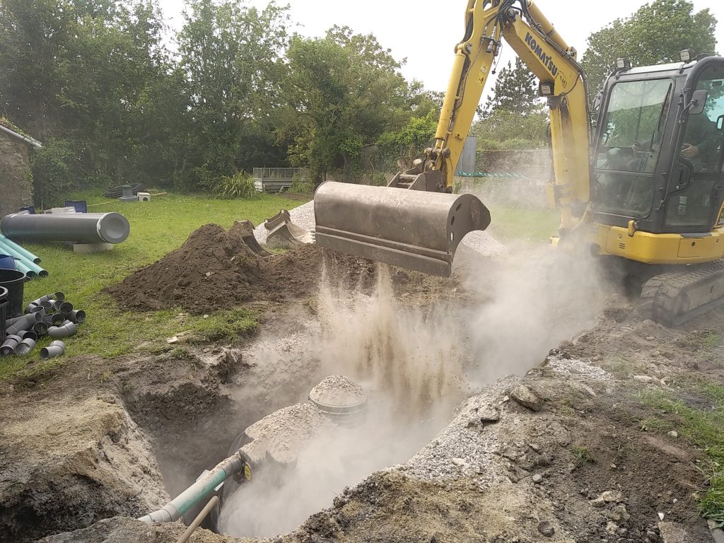 - L'épandage : les eaux ainsi pré-traitées, en sortie de fosse toutes eaux, sont équitablement réparties dans un ensemble de tranchées réalisées à faible profondeur. Ainsi, les bactéries naturellement présentes dans le sol assureront la dépollution des effluents domestiques par simple digestion aérobie. Les eaux ainsi traitées sont ensuite évacuées par infiltration dans le sol et contenue sur la parcelle.