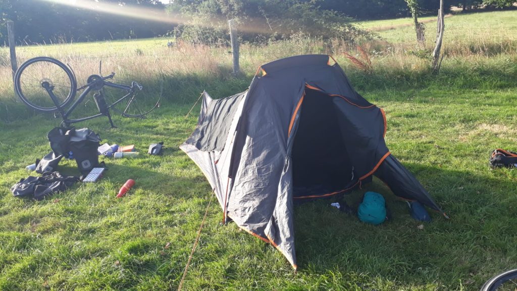 On passe par le Perrou pour arriver au premier camping labellisé Veloscenie : camping sous les poiriers à 4km de Domfront, un magnifique camping naturel à la ferme. Le meilleur que j'ai fait sur cette route !!!