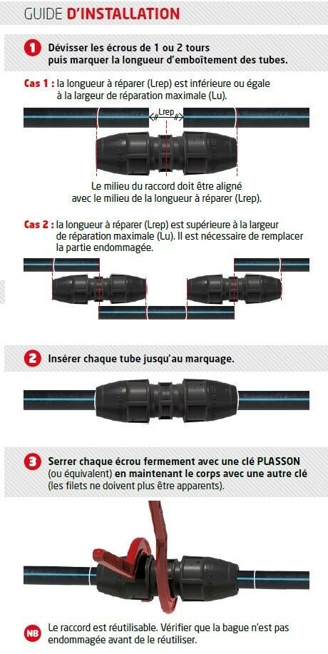 La problématique, pour une réparation efficace, reste souvent la nature de la conduite cassée : PVC, Polyéthylène (PE), cuivre, plomb, PER ... ?