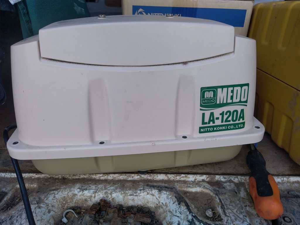 L'aération dans le réacteur est assurée par un compresseur à pistons Nitto LA-120A.