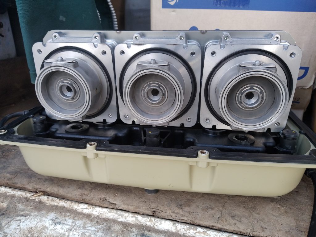 Ce compresseur est composé de 3 pistons qu'il faut changer entre 20 000 et 30 000 heures de fonctionnement. Nous procédons alors à ce changement avec le kit piston LA-100-120 ( comprenant 3 pistons, 2 filtres à air et les joints). Les 2 filtres à air sont aussi remplacés.