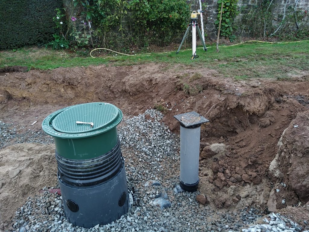 On s'oriente alors vers une Micro station, avec un recouvrement de 1.05 mètres ! A notre connaissance, seul un fabricant est capable de tolérer un tel remblaiement : Graf, avec la micro station EasyOne, jusqu'à 1.50 mètres de recouvrement, et sans ventilation secondaire !