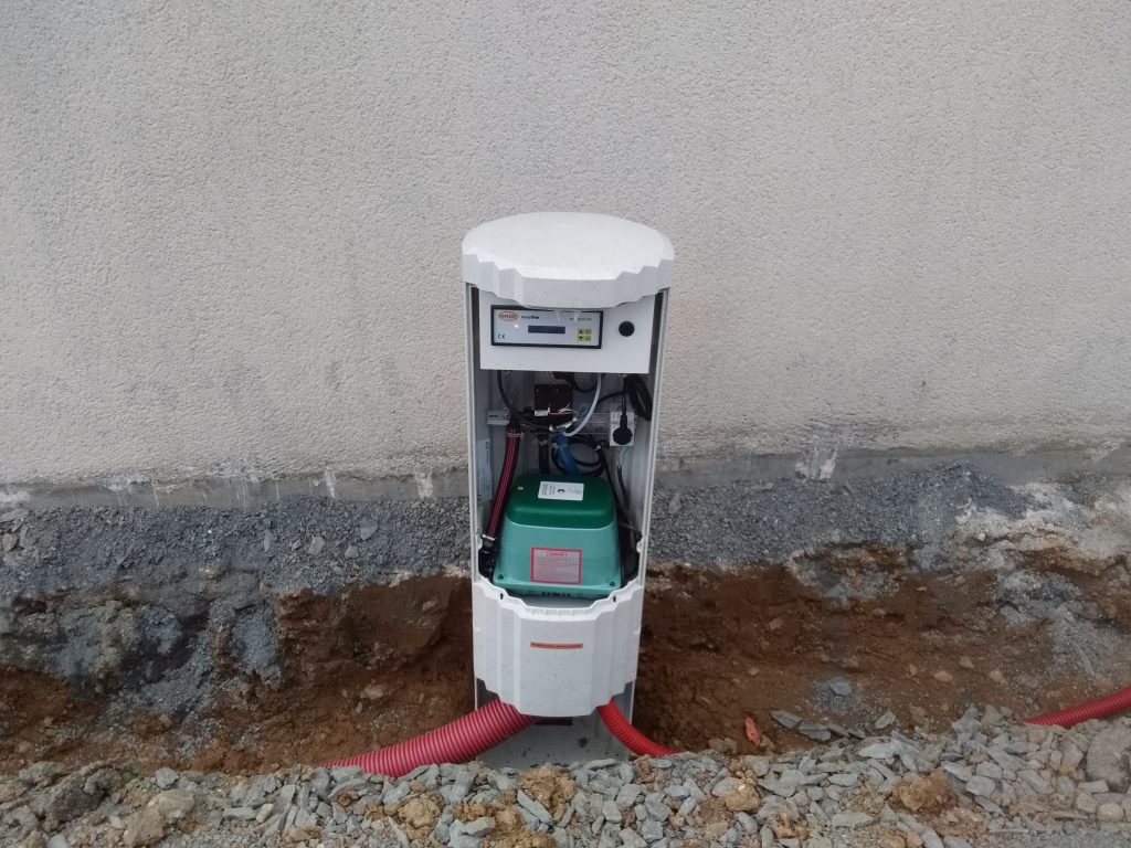 Le fonctionnement de la filière est donc simple : collecte des eaux usées brutes dans la micro station. Les eaux usées sont ensuite traitées par la station par aération et culture de bactéries aérobies. Le rejet est ensuite gravitaire, par infiltration dans le sol en place et contenue sur la parcelle.