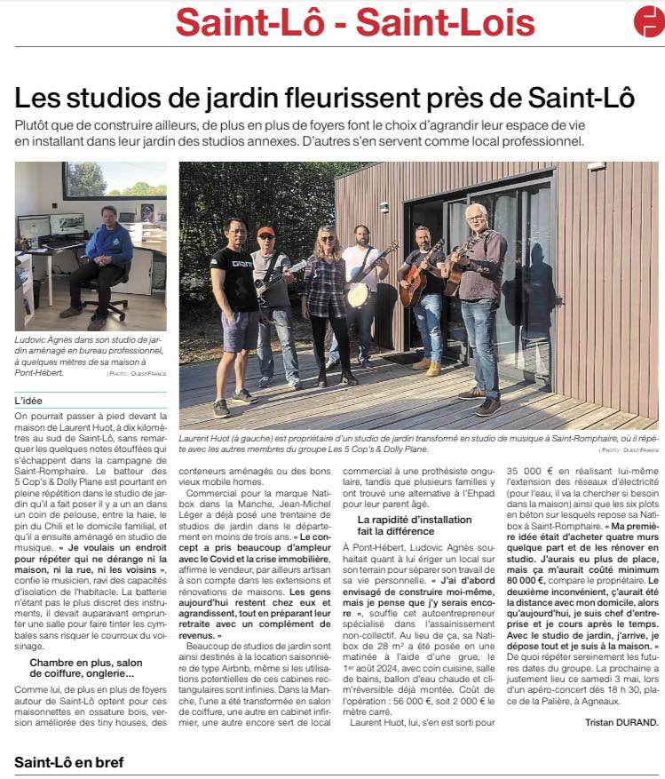 Les studios de jardin NATIBOX font parler d’eux dans la presse autour de Saint-Lô !
