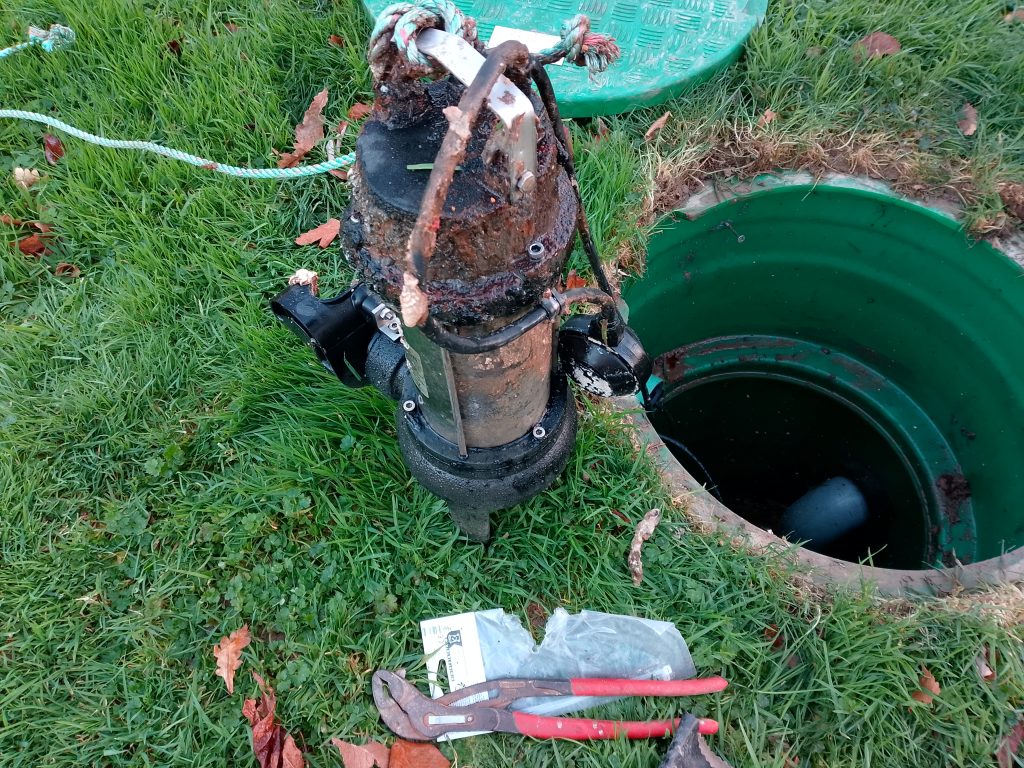 Nous intervenons alors rapidement. Sur place, nous identifions facilement le problème. La course du flotteur est trop longue. Il se loge alors dans un coin du poste de relevage, empêchant sa remontée et le déclenchement automatique de la pompe.