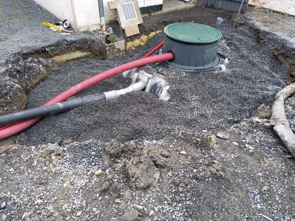 Un exemple ici, à la Meauffe 50880, avec la pose d'une micro station Garf EasyOne 5 EH, par la SARL Erick HAMOND, dans un sol argileux et hydromorphe à faible profondeur.