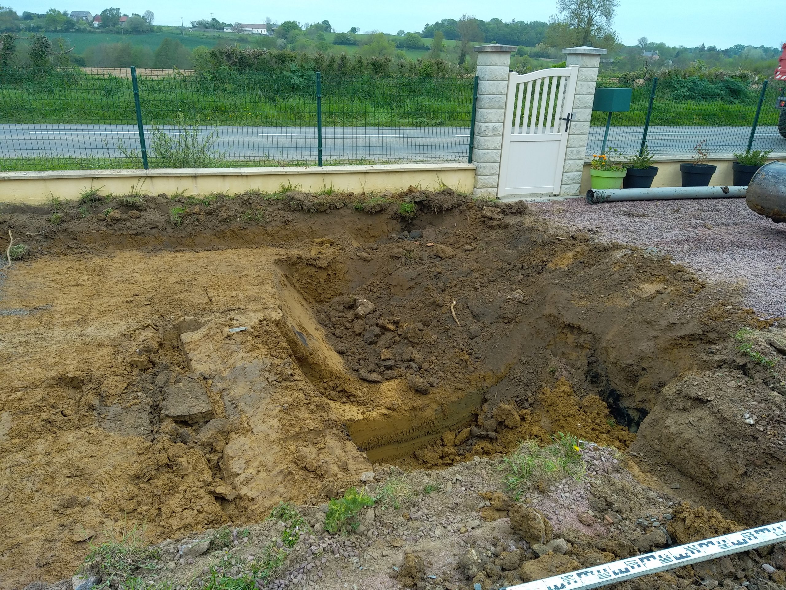 Avec un sol lourd, argileux et très hydromorphe, ce procédé compact est ancré et remblayé latéralement avec du béton à 250 Kg/m3.