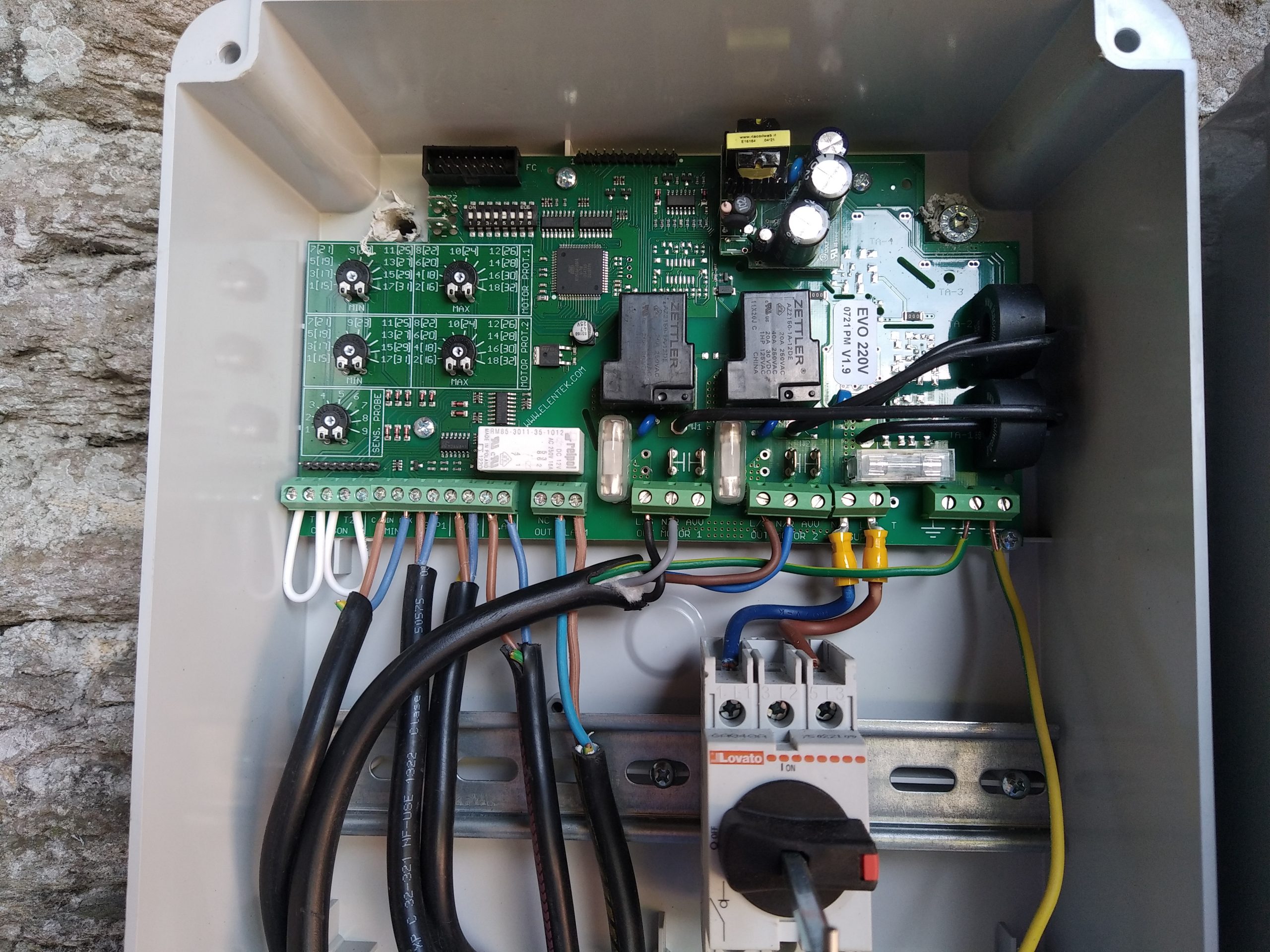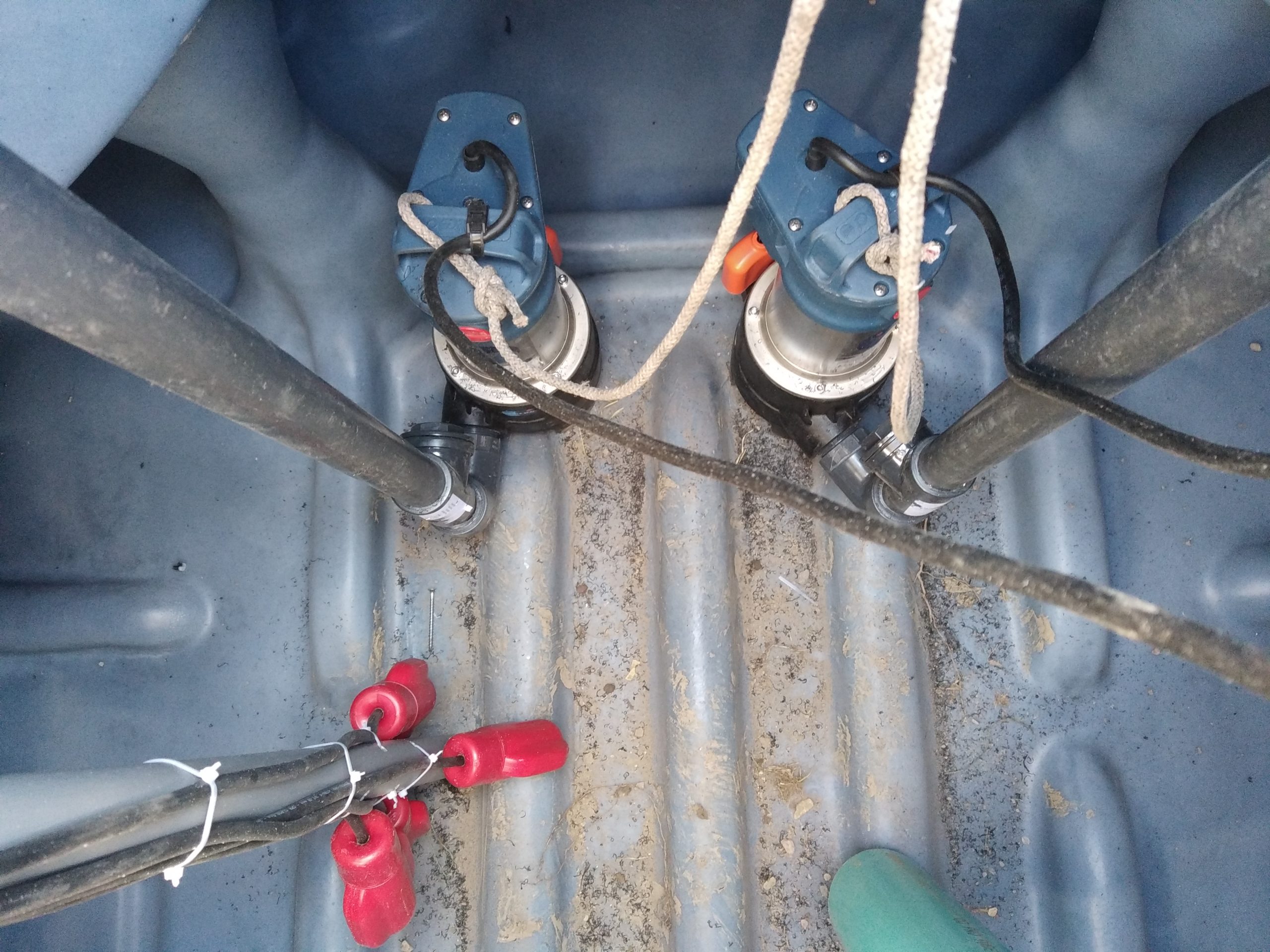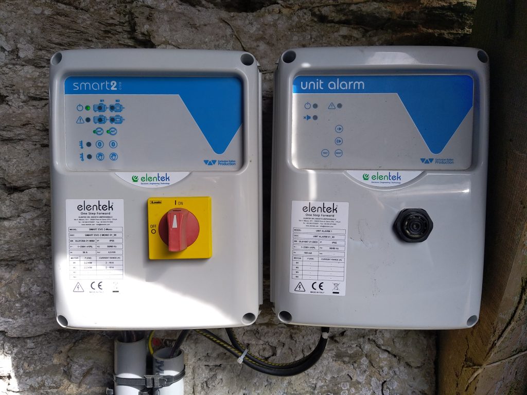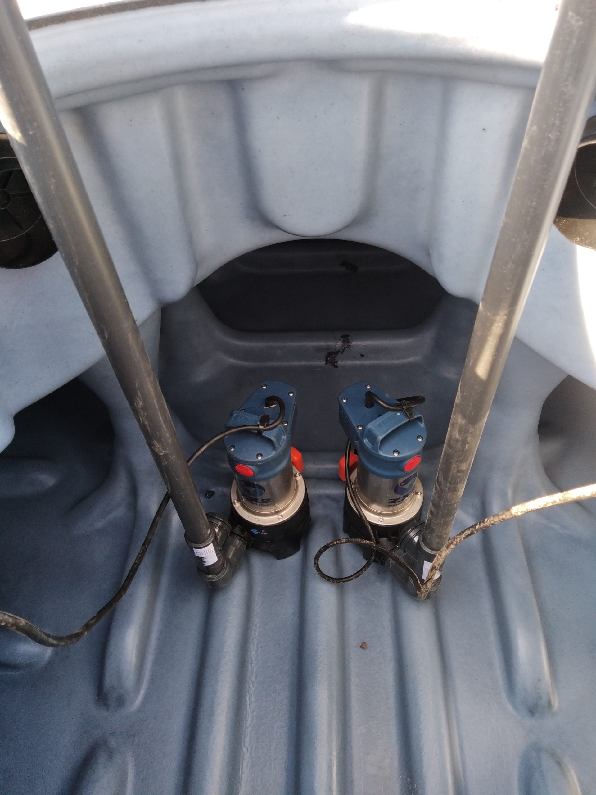 Ce poste est équipé de deux pompes Pedrollo ZXm 2/40-GM, pilotées par un coffret de gestion SMART EVO 2-Mono et une alarme de Elentek. Ce coffret de commande, associé à 4 flotteurs de niveau d'eau, permet de répondre à plusieurs besoins :