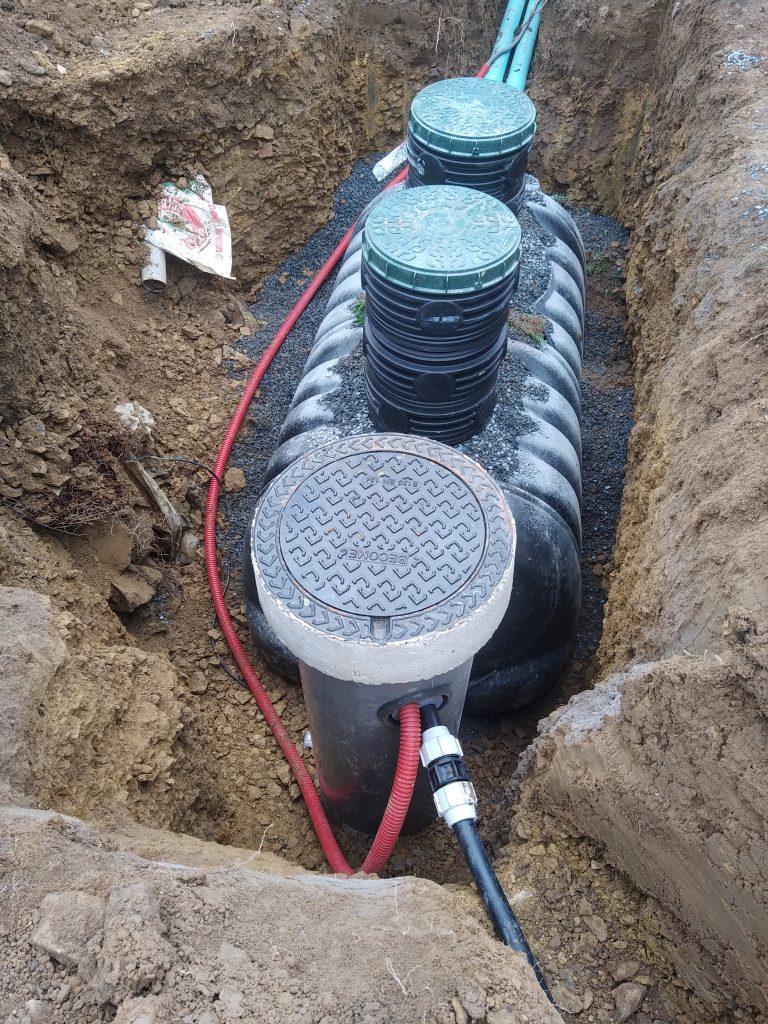 Ce poste de relevage et de refoulement pour eaux pré-traitées, installé en sortie de fosse toutes eaux, est conçu sur mesure, fabriqué en PVC renforcé CR8 D400 mm, équipé d'une pompe Pedrollo Top 3 GM Vortex et d'un couvercle en fonte.