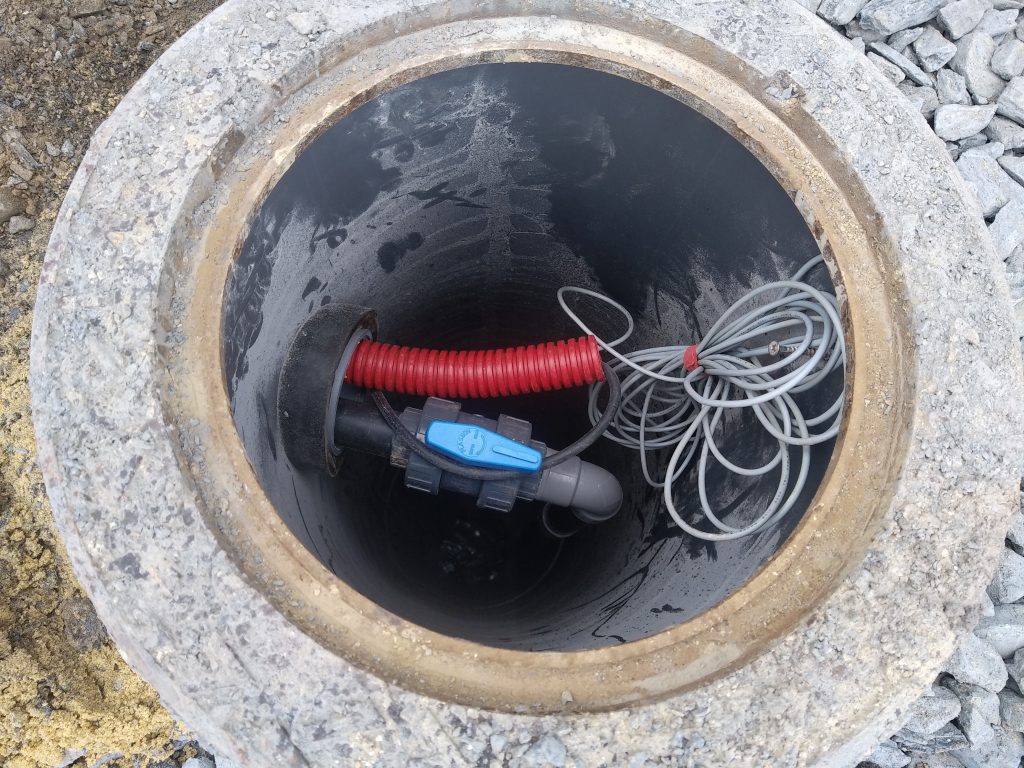 Le puits est réalisé en PVC CR8 de diamètre 400 mm, sur une hauteur d'environ 5 mètres, avec couvercle fonte en surface.