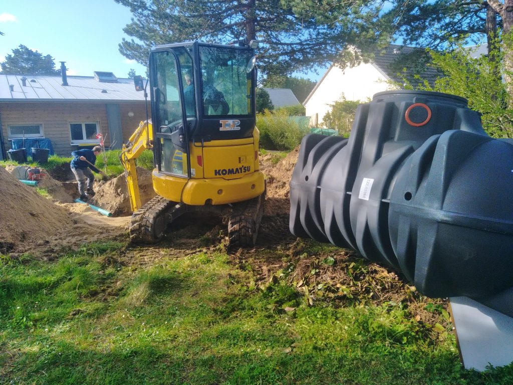 C'est le cas ici avec une installation à Portbail, en compagnie de la SARL Fossey Le Blond TP, avec la pose d'une cuve Graf Platine 5000 Litres équipée d'une pompe à déclenchement automatique, modèle Integra Inox. Un robinet déporté est installé à la demande du client.