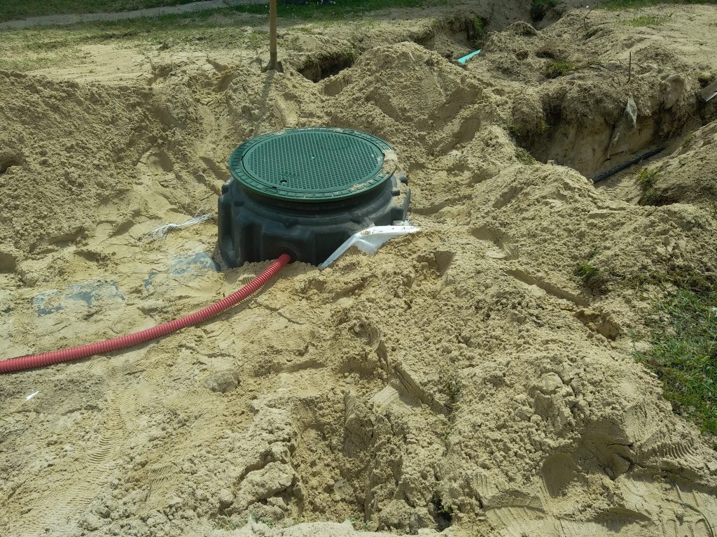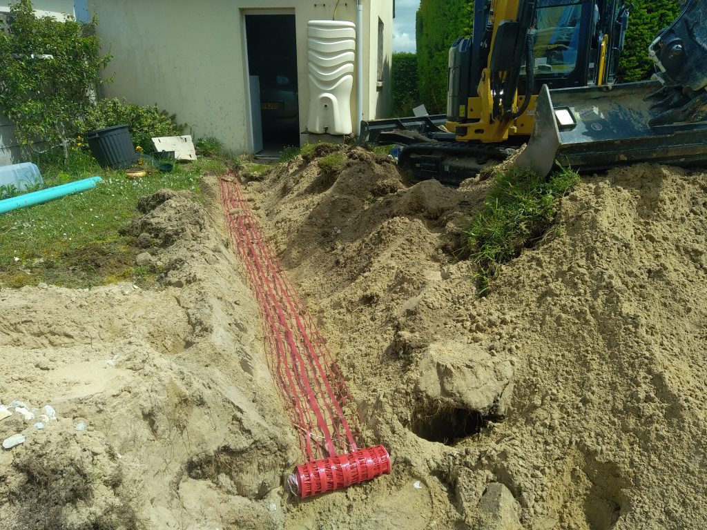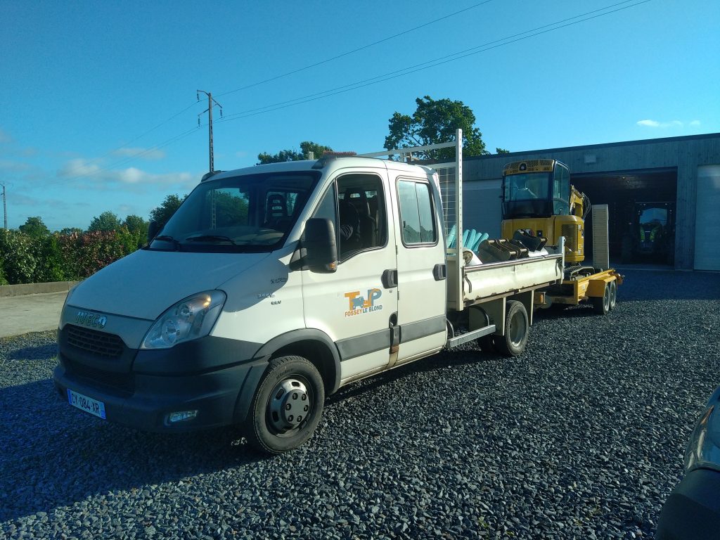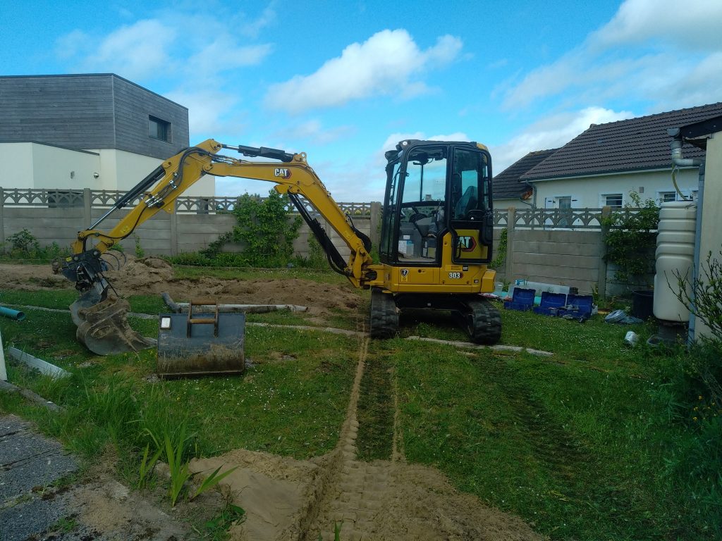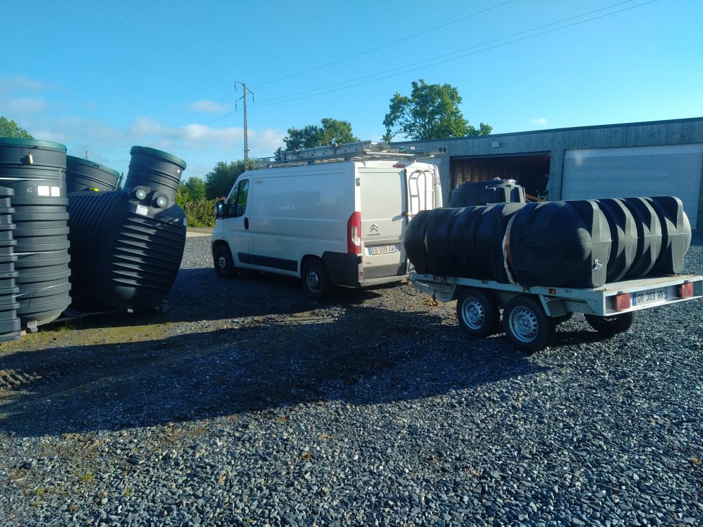Nous partons de bonne heure et de bonne humeur, en compagnie de notre partenaire Fossey Le Blond TP, direction Portbail, dans la Manche, pour la pose d'une cuve de récupération d'eau de pluie.