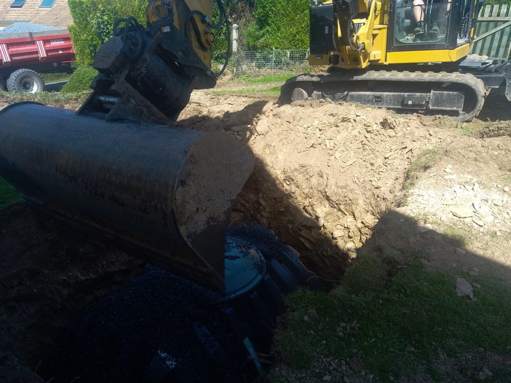 Reprise des chantiers d'Assainissement Non Collectif, à La Meauffe, avec notre partenaire SARL Erick Hamond.